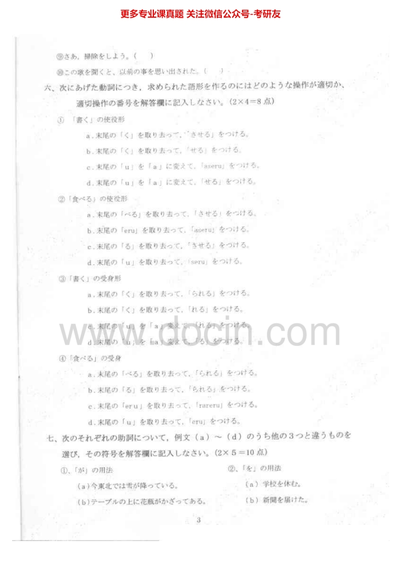 西南大学日语语言文学专业历年真题日语语言学基础(2007-2012)考研真题汇编.Image.Marked猴哥6个月前发布关注私信11.28MB35页03416西南大学日语语言文学专业历年真题日语语言学基础(2007-2012)考研真题汇编.Image.Marked此内容为免费资源,请登录后查看¥0 登录查看免费资源 第1页 / 共35页 第2页 / 共35页 第3页 / 共35页 该文档为免费文档,您可直接下载完整版进行阅读 © 版权声明文章版权归作者所有,未经允许请勿转载。THE END考研专业课 喜欢就支持一下吧点赞16赞赏 分享QQ空间微博QQ好友海报分享复制链接收藏