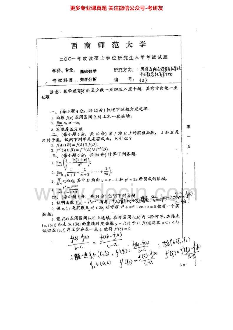 西南大学数学分析(2000-2012)考研真题汇编.Image.Marked猴哥6个月前发布关注私信6.28MB26页03313西南大学数学分析(2000-2012)考研真题汇编.Image.Marked此内容为免费资源,请登录后查看¥0 登录查看免费资源 第1页 / 共26页 第2页 / 共26页 第3页 / 共26页 该文档为免费文档,您可直接下载完整版进行阅读 © 版权声明文章版权归作者所有,未经允许请勿转载。THE END考研专业课 喜欢就支持一下吧点赞13赞赏 分享QQ空间微博QQ好友海报分享复制链接收藏