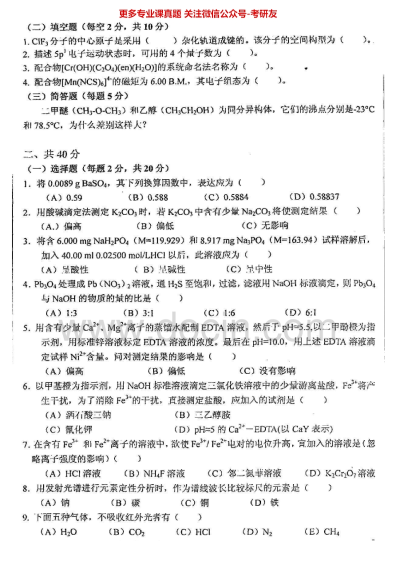 西南大学化学综合2006-2012汇编考研真题考研真题汇编.Image.Marked