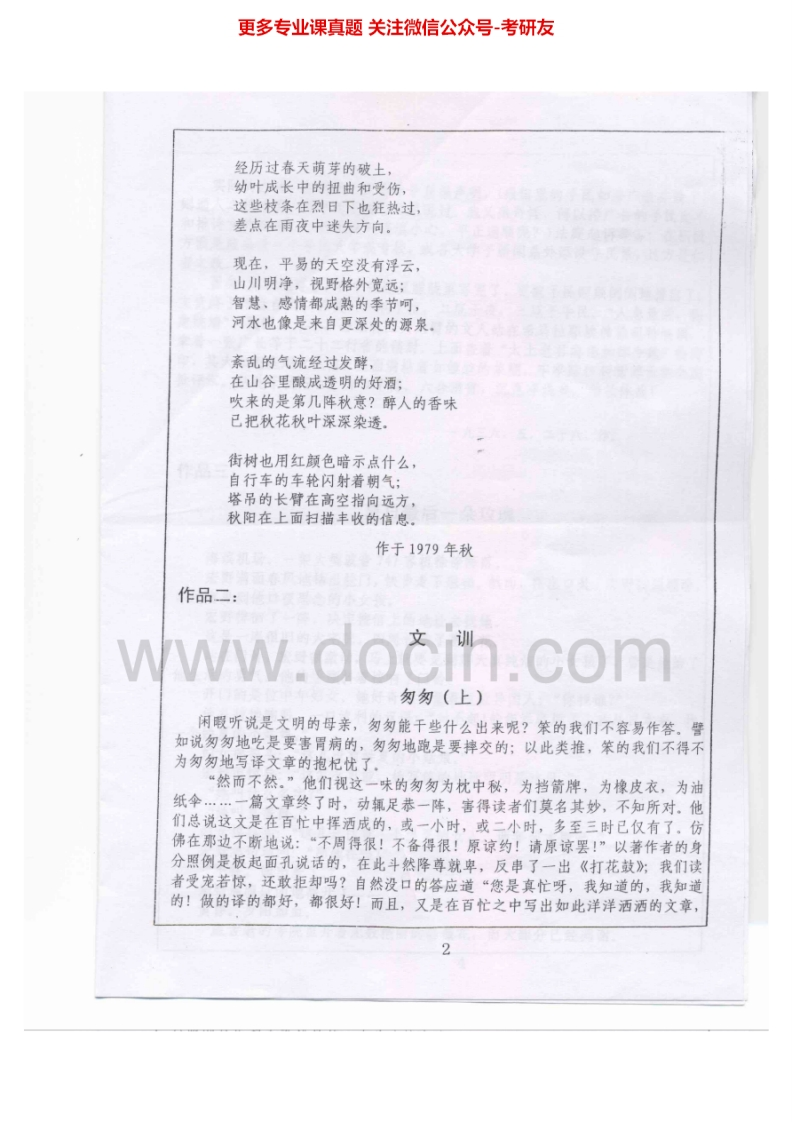 西南大学文论与写作2007-2012考研真题汇编.Image.Marked猴哥6个月前发布关注私信9.77MB26页05654西南大学文论与写作2007-2012考研真题汇编.Image.Marked此内容为免费资源,请登录后查看¥0 登录查看免费资源 第1页 / 共26页 第2页 / 共26页 第3页 / 共26页 该文档为免费文档,您可直接下载完整版进行阅读 © 版权声明文章版权归作者所有,未经允许请勿转载。THE END考研专业课 喜欢就支持一下吧点赞54赞赏 分享QQ空间微博QQ好友海报分享复制链接收藏