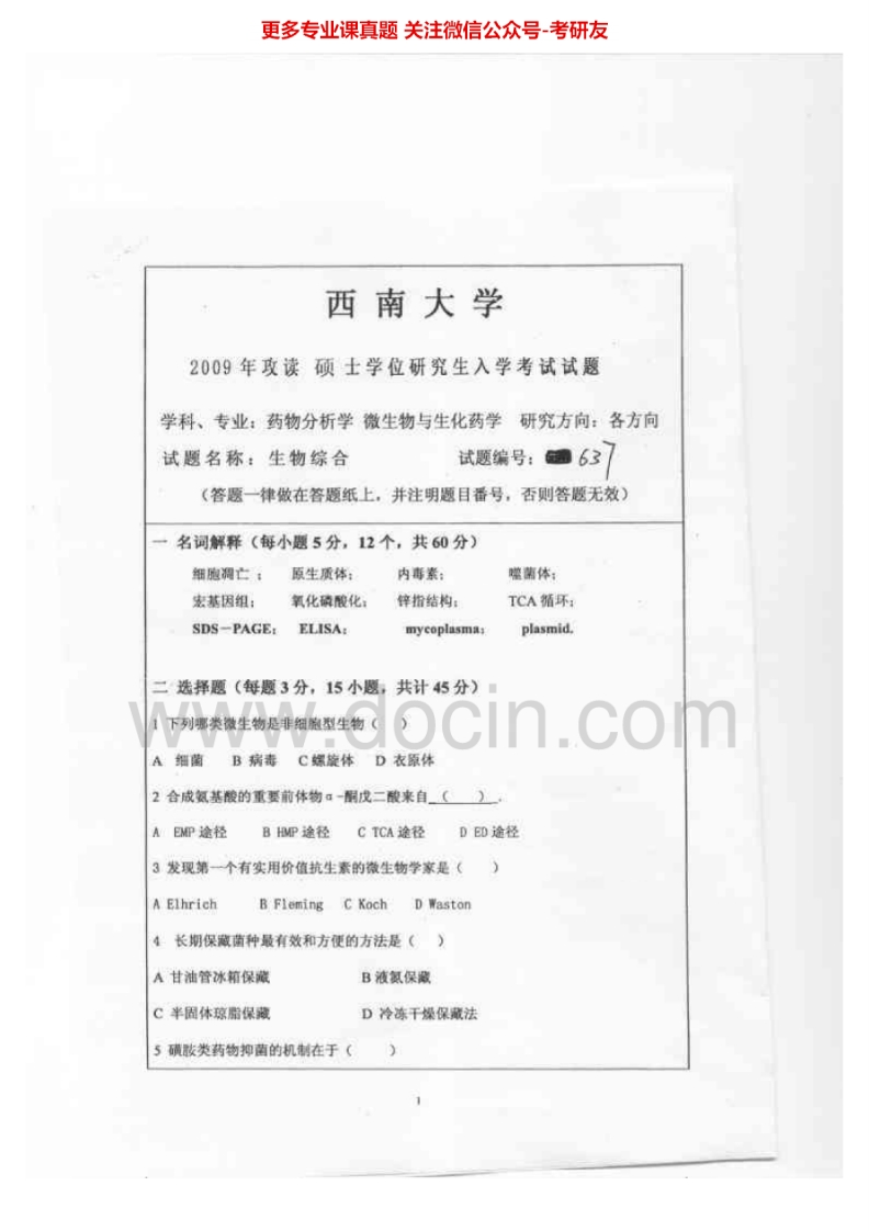 西南大学生物综合2008-2012考研真题汇编.Image.Marked猴哥6个月前发布关注私信4.87MB19页04738西南大学生物综合2008-2012考研真题汇编.Image.Marked此内容为免费资源,请登录后查看¥0 登录查看免费资源 第1页 / 共19页 第2页 / 共19页 第3页 / 共19页 该文档为免费文档,您可直接下载完整版进行阅读 © 版权声明文章版权归作者所有,未经允许请勿转载。THE END考研专业课 喜欢就支持一下吧点赞38赞赏 分享QQ空间微博QQ好友海报分享复制链接收藏