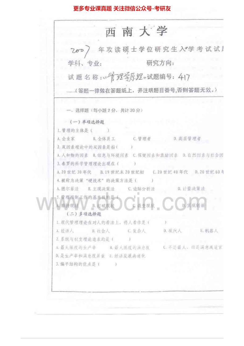 西南大学管理学2006-2012考研真题汇编.Image.Marked猴哥6个月前发布关注私信4.23MB18页07914西南大学管理学2006-2012考研真题汇编.Image.Marked此内容为免费资源,请登录后查看¥0 登录查看免费资源 第1页 / 共18页 第2页 / 共18页 第3页 / 共18页 该文档为免费文档,您可直接下载完整版进行阅读 © 版权声明文章版权归作者所有,未经允许请勿转载。THE END考研专业课 喜欢就支持一下吧点赞14赞赏 分享QQ空间微博QQ好友海报分享复制链接收藏