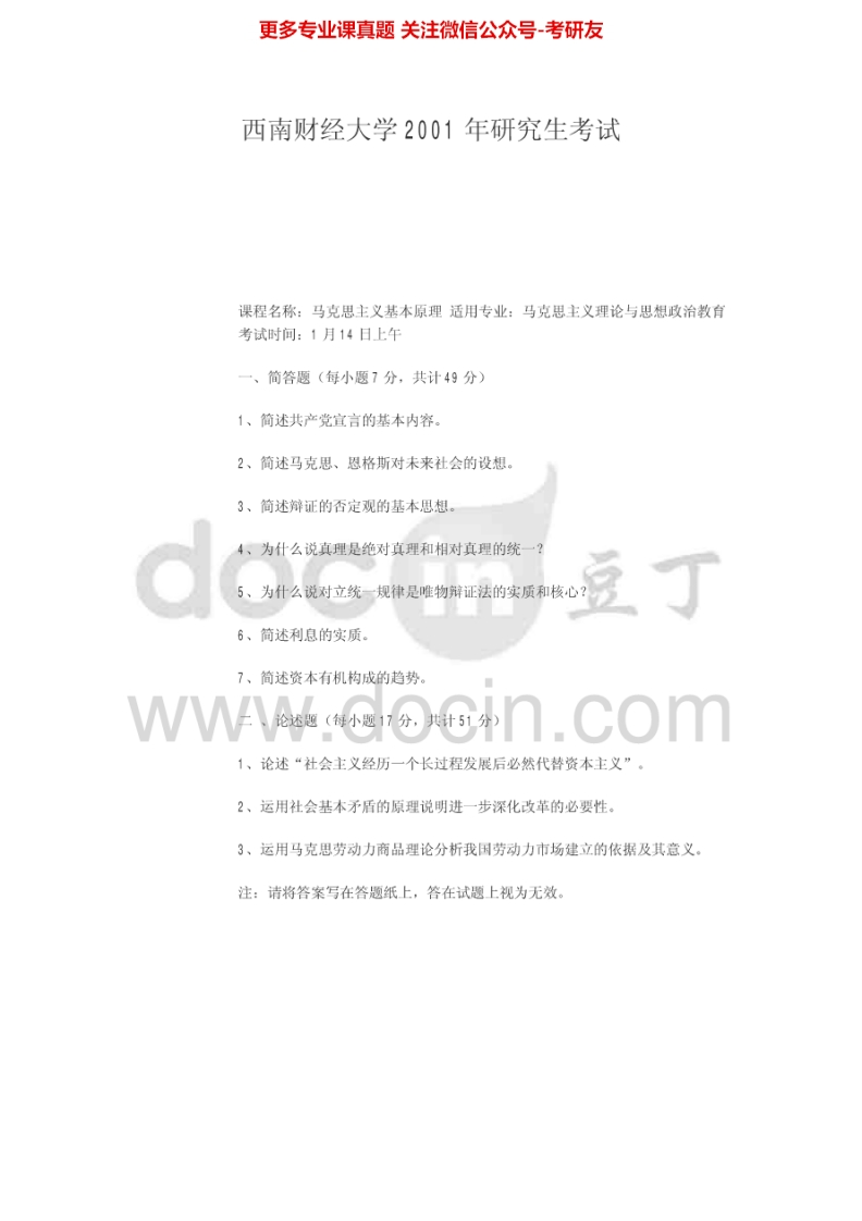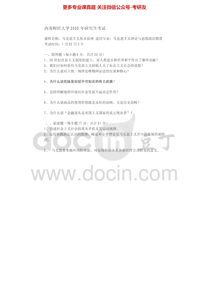 西南财经大学618马克思主义基本原理1999-2003考研真题汇编猴哥6个月前发布关注私信0.25MB5页07342西南财经大学618马克思主义基本原理1999-2003考研真题汇编此内容为免费资源,请登录后查看¥0 登录查看免费资源 第1页 / 共5页 第2页 / 共5页 第3页 / 共5页 该文档为免费文档,您可直接下载完整版进行阅读 © 版权声明文章版权归作者所有,未经允许请勿转载。THE END《西南财经大学》(618)马克思主义基本原理考研资料考研专业课 喜欢就支持一下吧点赞42赞赏 分享QQ空间微博QQ好友海报分享复制链接收藏