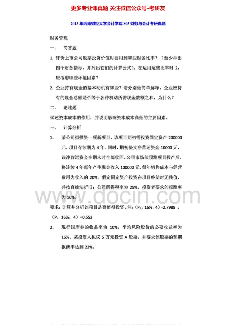 西南财经大学805财务与会计2012-2014考研真题汇编猴哥6个月前发布关注私信1.83MB9页06620西南财经大学805财务与会计2012-2014考研真题汇编此内容为免费资源,请登录后查看¥0 登录查看免费资源 第1页 / 共9页 第2页 / 共9页 第3页 / 共9页 该文档为免费文档,您可直接下载完整版进行阅读 © 版权声明文章版权归作者所有,未经允许请勿转载。THE END《西南财经大学》(805)财务与会计考研资料考研专业课 喜欢就支持一下吧点赞20赞赏 分享QQ空间微博QQ好友海报分享复制链接收藏