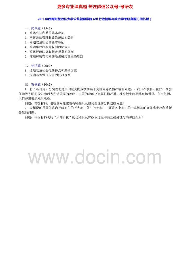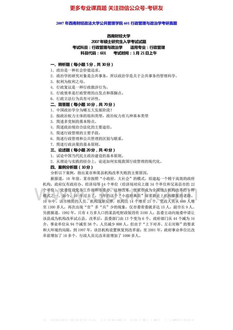 西南财经大学620公共行政学2004-2007、2012、2014真题其中2017有答案考研真题汇编-学习资源网 - 分享优质学习资料