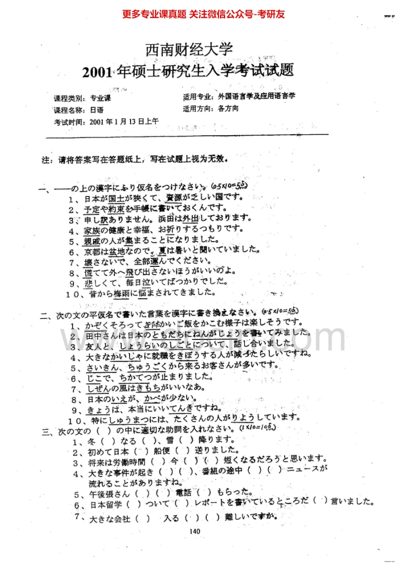 西南财经大学241日语2000-2007考研真题汇编-学习资源网 - 分享优质学习资料