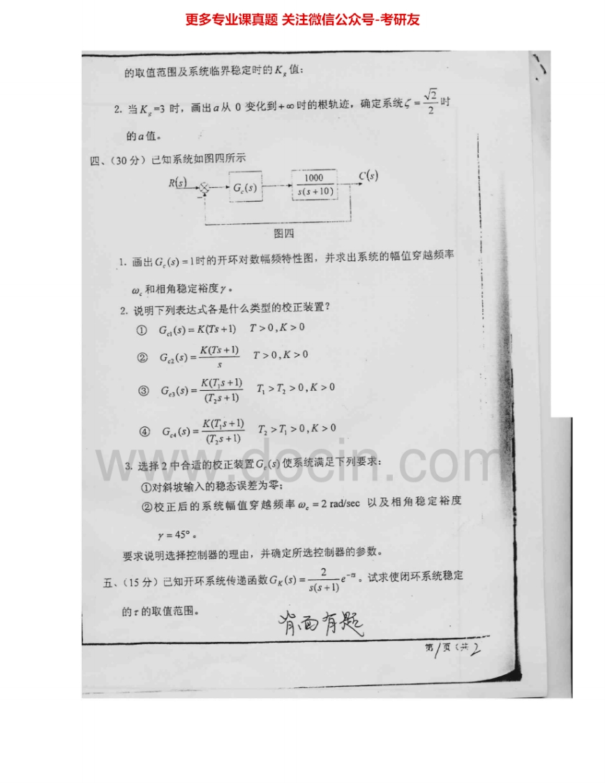西安交通大学811自动控制原理与信号与系统2003-2005、2007-2008考研真题汇编猴哥6个月前发布关注私信4.10MB19页07817西安交通大学811自动控制原理与信号与系统2003-2005、2007-2008考研真题汇编此内容为免费资源,请登录后查看¥0 登录查看免费资源 第1页 / 共19页 第2页 / 共19页 第3页 / 共19页 该文档为免费文档,您可直接下载完整版进行阅读 © 版权声明文章版权归作者所有,未经允许请勿转载。THE END《西安交通大学》(811)自动控制理论(含现代控制)考研资料考研专业课 喜欢就支持一下吧点赞17赞赏 分享QQ空间微博QQ好友海报分享复制链接收藏