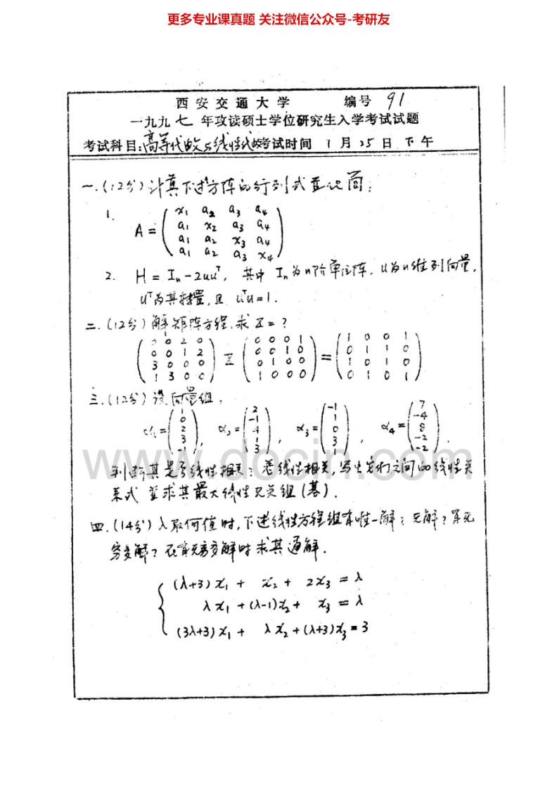 西安交通大学818高等代数与线性代数1996-2002、2004-2008考研真题汇编.Image.Marked猴哥6个月前发布关注私信6.72MB23页09716西安交通大学818高等代数与线性代数1996-2002、2004-2008考研真题汇编.Image.Marked此内容为免费资源,请登录后查看¥0 登录查看免费资源 第1页 / 共23页 第2页 / 共23页 第3页 / 共23页 该文档为免费文档,您可直接下载完整版进行阅读 © 版权声明文章版权归作者所有,未经允许请勿转载。THE END《西安交通大学》(818)高等代数与线性代数考研资料考研专业课 喜欢就支持一下吧点赞16赞赏 分享QQ空间微博QQ好友海报分享复制链接收藏