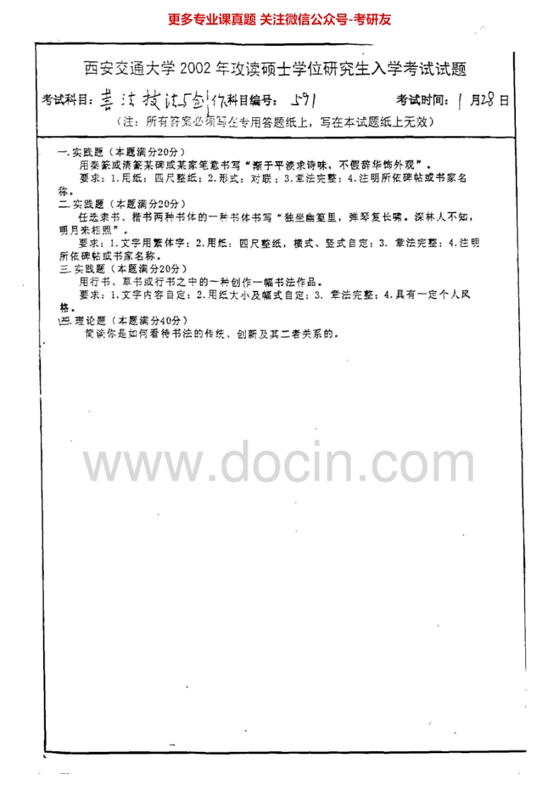 西安交通大学书法技法与创作2002-2008考研真题汇编.Image.Marked猴哥6个月前发布关注私信1.42MB8页04115西安交通大学书法技法与创作2002-2008考研真题汇编.Image.Marked此内容为免费资源,请登录后查看¥0 登录查看免费资源 第1页 / 共8页 第2页 / 共8页 第3页 / 共8页 该文档为免费文档,您可直接下载完整版进行阅读 © 版权声明文章版权归作者所有,未经允许请勿转载。THE END考研专业课 喜欢就支持一下吧点赞15赞赏 分享QQ空间微博QQ好友海报分享复制链接收藏