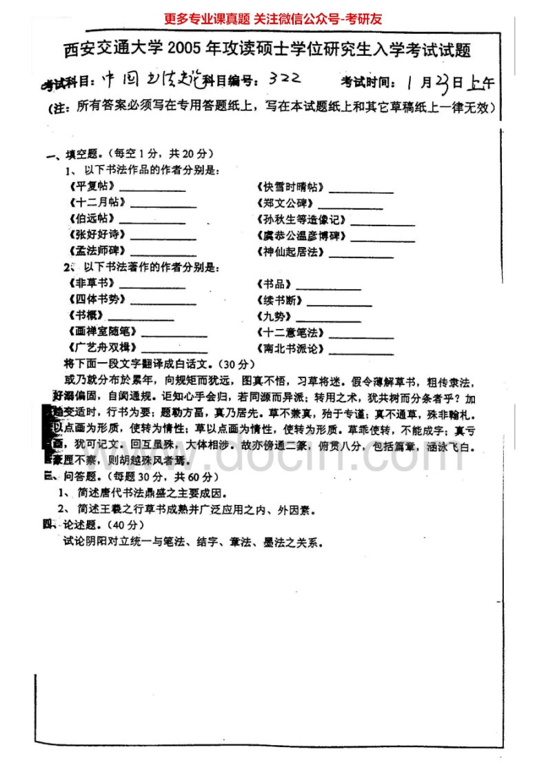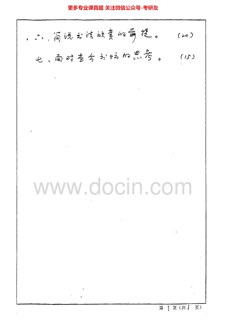 西安交通大学中国书法史论2004-2008考研真题汇编.Image.Marked猴哥6个月前发布关注私信1.73MB7页08930西安交通大学中国书法史论2004-2008考研真题汇编.Image.Marked此内容为免费资源,请登录后查看¥0 登录查看免费资源 第1页 / 共7页 第2页 / 共7页 第3页 / 共7页 该文档为免费文档,您可直接下载完整版进行阅读 © 版权声明文章版权归作者所有,未经允许请勿转载。THE END考研专业课 喜欢就支持一下吧点赞30赞赏 分享QQ空间微博QQ好友海报分享复制链接收藏