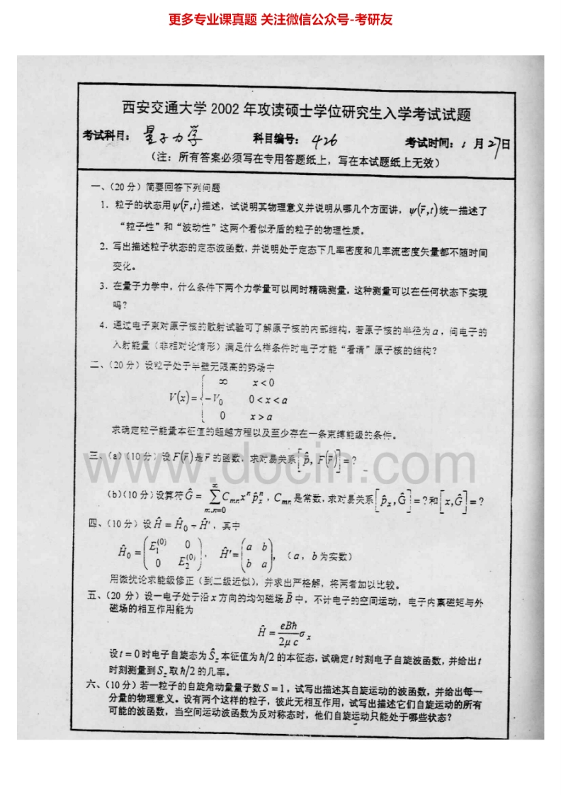 西安交通大学量子力学2002-2006考研真题汇编猴哥6个月前发布关注私信3.14MB12页05533西安交通大学量子力学2002-2006考研真题汇编此内容为免费资源,请登录后查看¥0 登录查看免费资源 第1页 / 共12页 第2页 / 共12页 第3页 / 共12页 该文档为免费文档,您可直接下载完整版进行阅读 © 版权声明文章版权归作者所有,未经允许请勿转载。THE END考研专业课 喜欢就支持一下吧点赞33赞赏 分享QQ空间微博QQ好友海报分享复制链接收藏