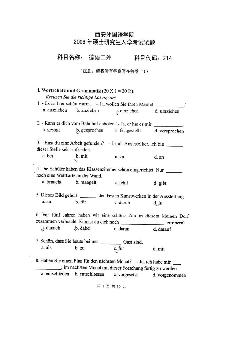西安外国语大学244德语二外历年考研真题汇编猴哥6个月前发布关注私信3.66MB46页03716西安外国语大学244德语二外历年考研真题汇编此内容为免费资源,请登录后查看¥0 登录查看免费资源 第1页 / 共46页 第2页 / 共46页 第3页 / 共46页 该文档为免费文档,您可直接下载完整版进行阅读 © 版权声明文章版权归作者所有,未经允许请勿转载。THE END考研专业课 喜欢就支持一下吧点赞16赞赏 分享QQ空间微博QQ好友海报分享复制链接收藏