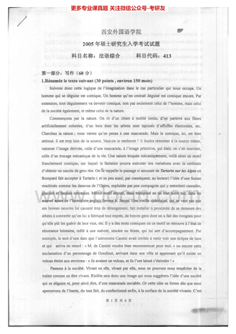 西安外国语大学813法语综合2004-2006考研真题汇编.Image.Marked猴哥6个月前发布关注私信4.99MB11页07525西安外国语大学813法语综合2004-2006考研真题汇编.Image.Marked此内容为免费资源,请登录后查看¥0 登录查看免费资源 第1页 / 共11页 第2页 / 共11页 第3页 / 共11页 该文档为免费文档,您可直接下载完整版进行阅读 © 版权声明文章版权归作者所有,未经允许请勿转载。THE END《西安外国语大学》(813)法语综合考研资料考研专业课 喜欢就支持一下吧点赞25赞赏 分享QQ空间微博QQ好友海报分享复制链接收藏