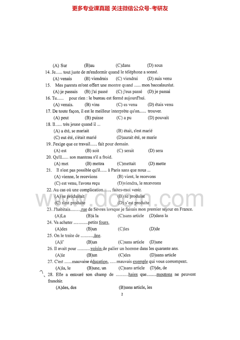 西安外国语大学613法语基础2004-2005考研真题汇编.Image.Marked猴哥6个月前发布关注私信5.98MB31页03911西安外国语大学613法语基础2004-2005考研真题汇编.Image.Marked此内容为免费资源,请登录后查看¥0 登录查看免费资源 第1页 / 共31页 第2页 / 共31页 第3页 / 共31页 该文档为免费文档,您可直接下载完整版进行阅读 © 版权声明文章版权归作者所有,未经允许请勿转载。THE END《西安外国语大学》(613)法语基础考研资料考研专业课 喜欢就支持一下吧点赞11赞赏 分享QQ空间微博QQ好友海报分享复制链接收藏