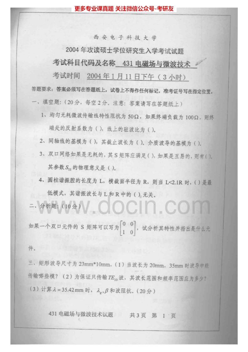 西安电子科技大学822电磁场与微波技术2003-2007考研真题汇编.Image.Marked猴哥6个月前发布关注私信3.98MB15页06843西安电子科技大学822电磁场与微波技术2003-2007考研真题汇编.Image.Marked此内容为免费资源,请登录后查看¥0 登录查看免费资源 第1页 / 共15页 第2页 / 共15页 第3页 / 共15页 该文档为免费文档,您可直接下载完整版进行阅读 © 版权声明文章版权归作者所有,未经允许请勿转载。THE END《西安电子科技大学》(822)电磁场与微波技术考研资料考研专业课 喜欢就支持一下吧点赞43赞赏 分享QQ空间微博QQ好友海报分享复制链接收藏