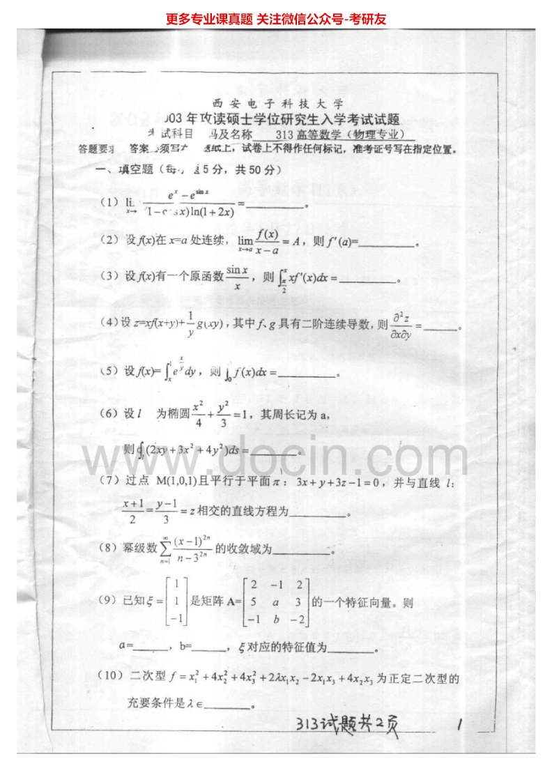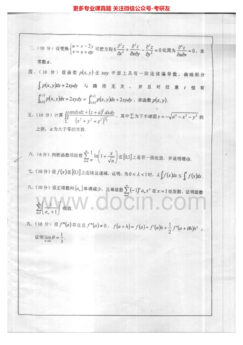 西安电子科技大学602高等数学2002-2007考研真题汇编.Image.Marked猴哥6个月前发布关注私信4.51MB12页04663西安电子科技大学602高等数学2002-2007考研真题汇编.Image.Marked此内容为免费资源,请登录后查看¥0 登录查看免费资源 第1页 / 共12页 第2页 / 共12页 第3页 / 共12页 该文档为免费文档,您可直接下载完整版进行阅读 © 版权声明文章版权归作者所有,未经允许请勿转载。THE END《西安电子科技大学》(602)高等数学考研资料考研专业课 喜欢就支持一下吧点赞63赞赏 分享QQ空间微博QQ好友海报分享复制链接收藏
