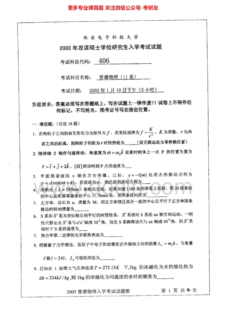西安电子科技大学872普通物理2003-2008考研真题汇编.Image.Marked-学习资源网 - 分享优质学习资料