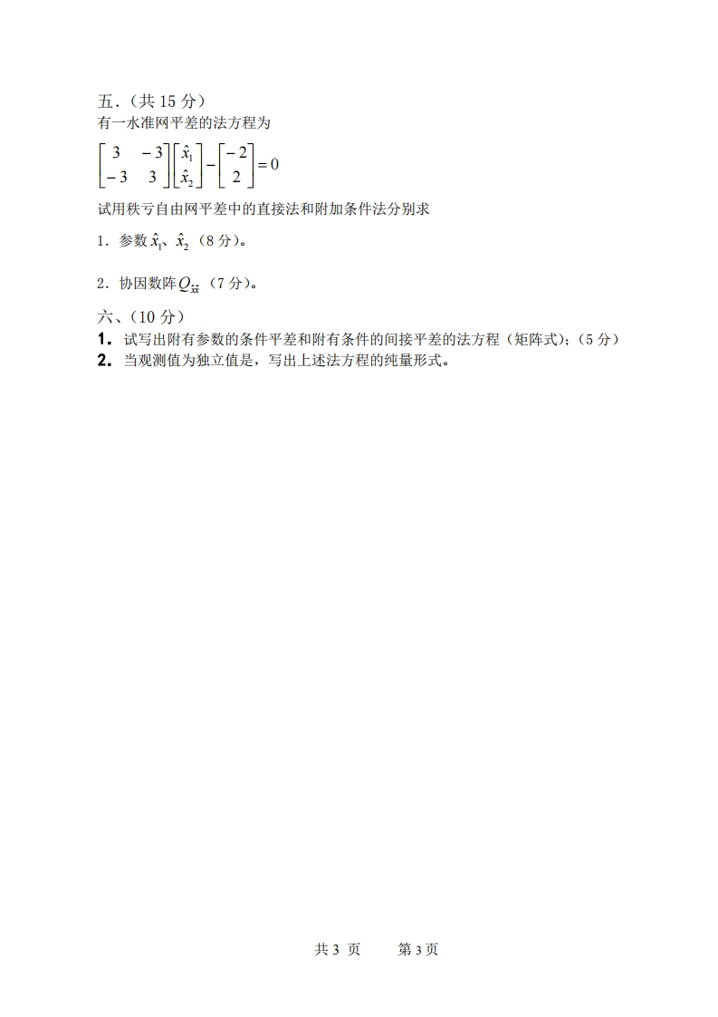 西安科技大学449测量平差基础2007年考研真题-学习资源网 - 分享优质学习资料