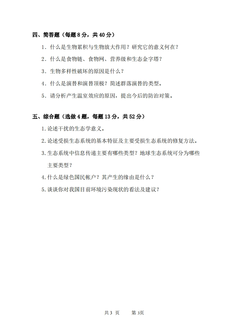 西安科技大学457环境生态学2007年考研真题