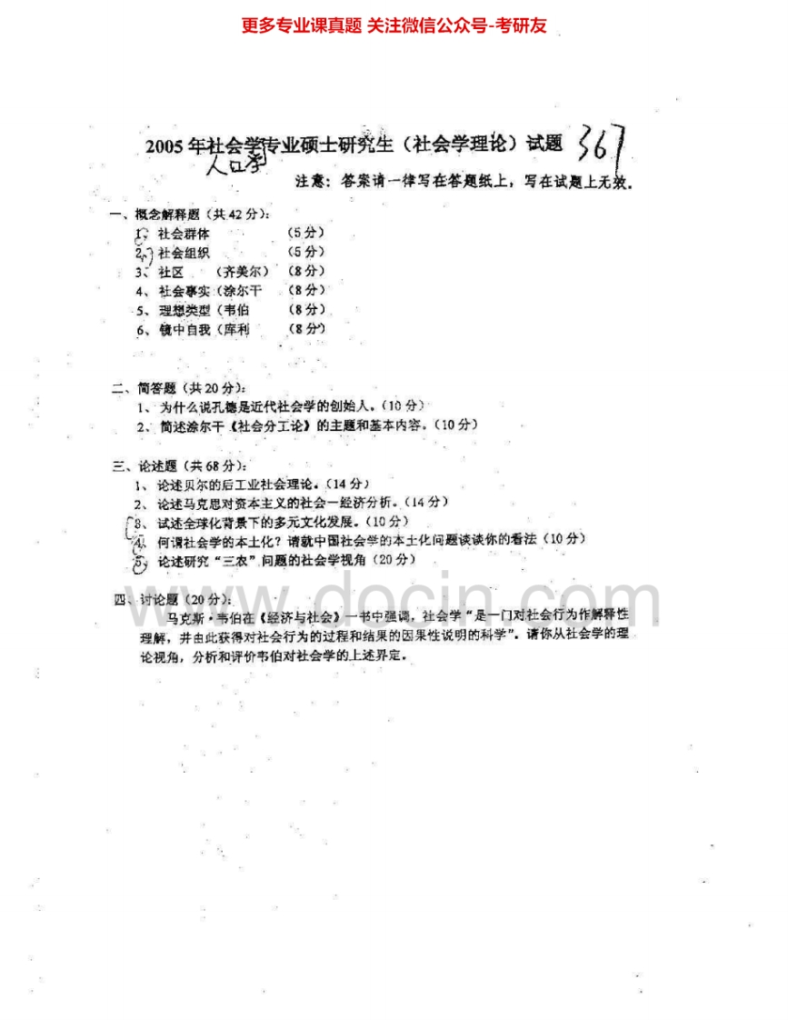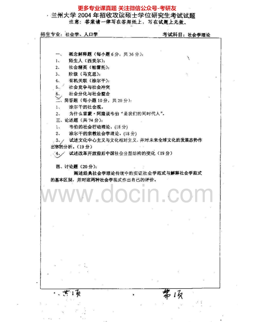 兰州大学635社会学理论2003-2005考研真题汇编.Image.Marked