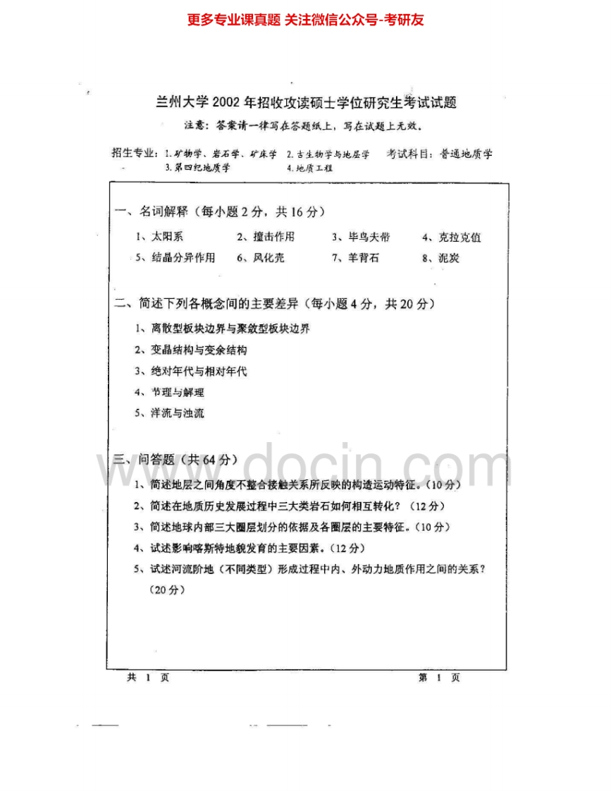 兰州大学616普通地质学2001-2005、2007考研真题汇编.Image.Marked-学习资源网 - 分享优质学习资料