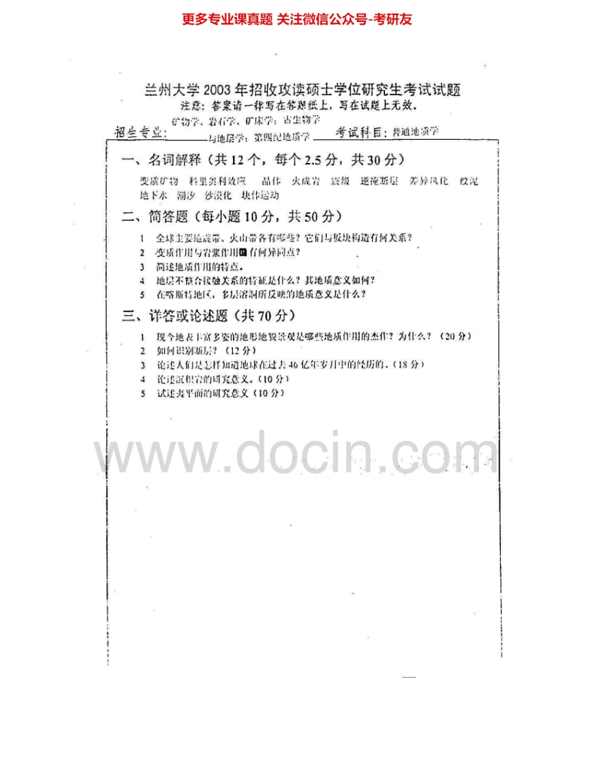 兰州大学616普通地质学2001-2005、2007考研真题汇编.Image.Marked