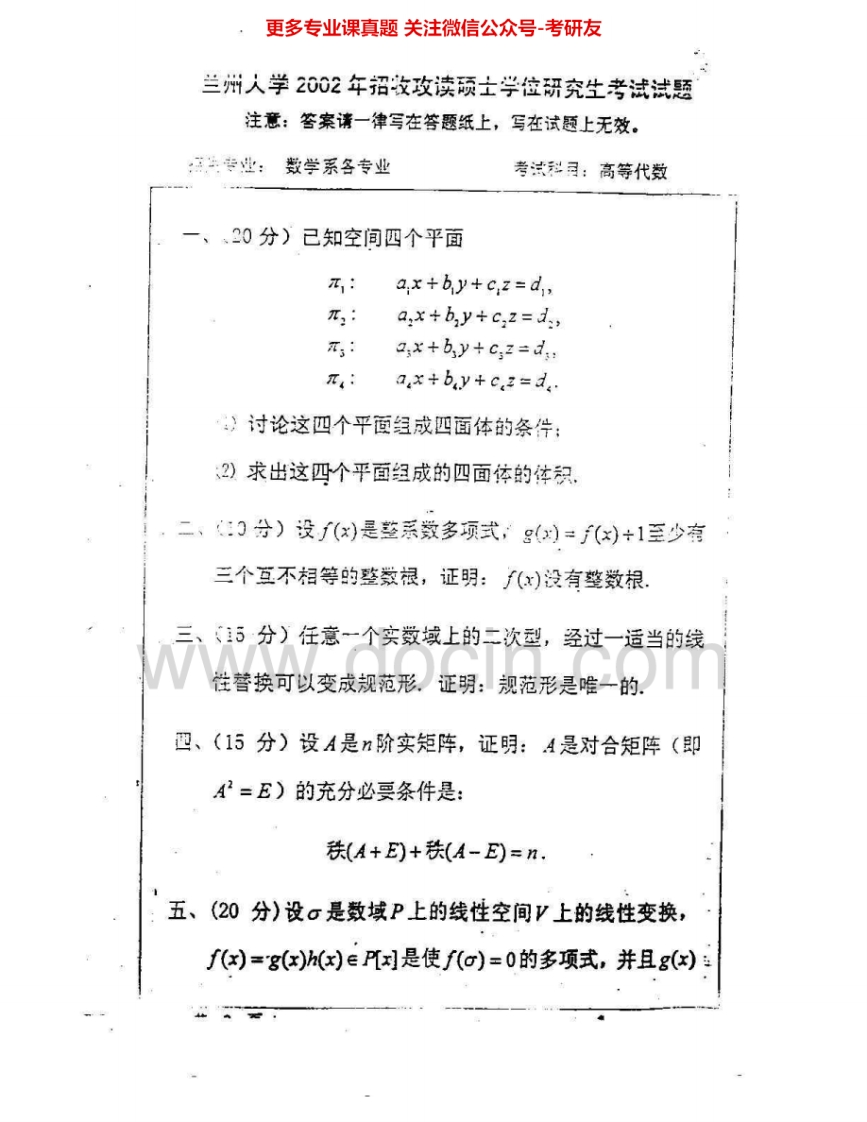 兰州大学801高等代数2001-2011其中2011有答案考研真题汇编.Image.Marked-学习资源网 - 分享优质学习资料