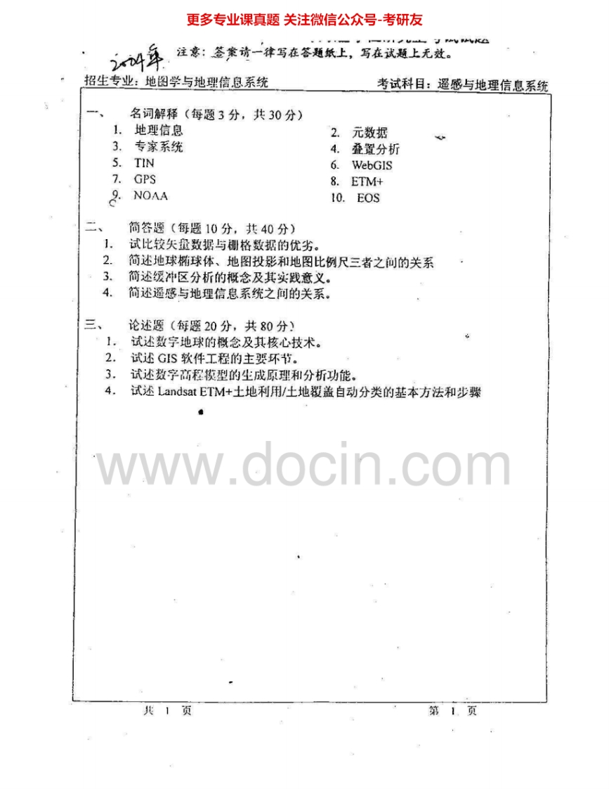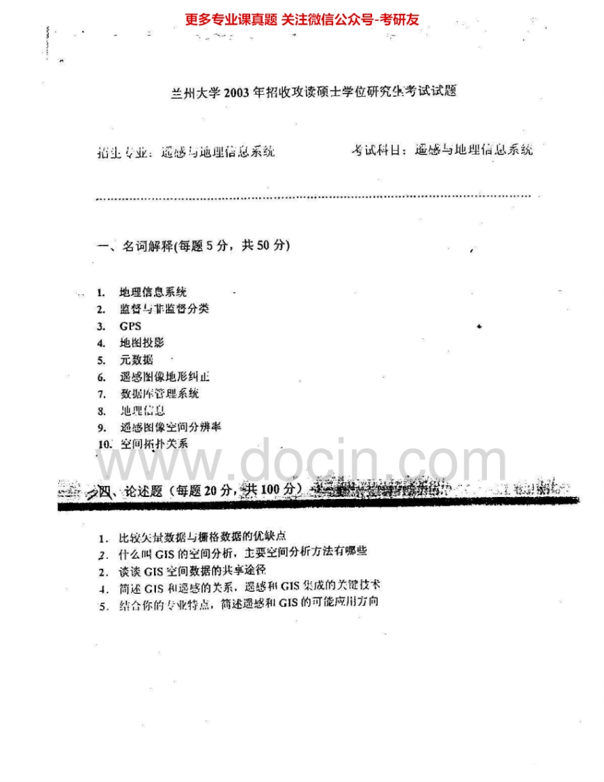 兰州大学822遥感与地理信息系统2002-2005、2008考研真题汇编-学习资源网 - 分享优质学习资料
