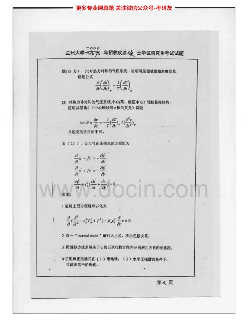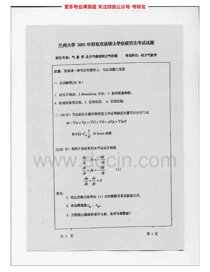 兰州大学837动力气象学2000-2005考研真题汇编.Image.Marked猴哥6个月前发布关注私信3.07MB12页03915兰州大学837动力气象学2000-2005考研真题汇编.Image.Marked此内容为免费资源,请登录后查看¥0 登录查看免费资源 第1页 / 共12页 第2页 / 共12页 第3页 / 共12页 该文档为免费文档,您可直接下载完整版进行阅读 © 版权声明文章版权归作者所有,未经允许请勿转载。THE END《兰州大学》(837)中国哲学史考研资料考研专业课 喜欢就支持一下吧点赞15赞赏 分享QQ空间微博QQ好友海报分享复制链接收藏
