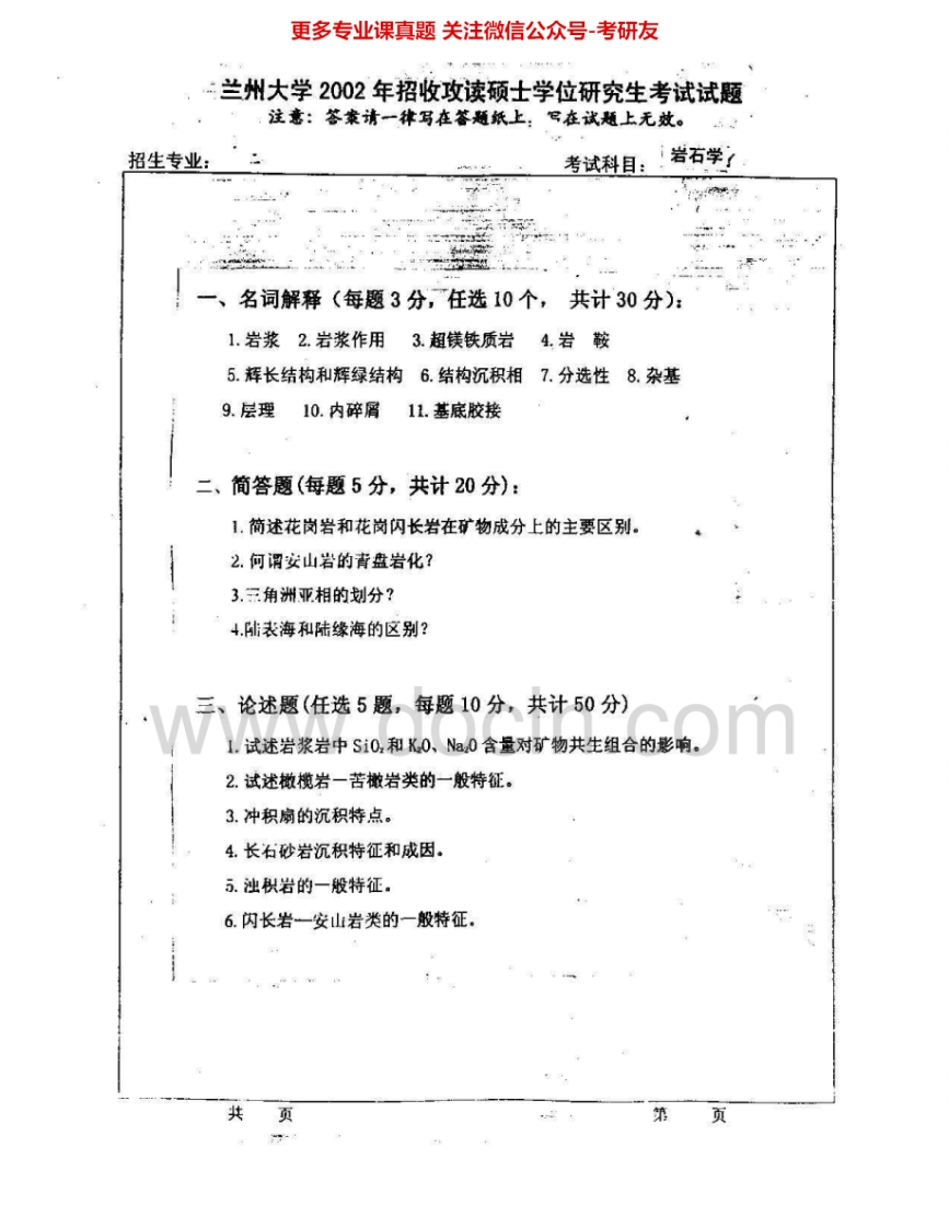 兰州大学823岩石学2000-2005考研真题汇编.Image.Marked猴哥6个月前发布关注私信1.47MB6页09036兰州大学823岩石学2000-2005考研真题汇编.Image.Marked此内容为免费资源,请登录后查看¥0 登录查看免费资源 第1页 / 共6页 第2页 / 共6页 第3页 / 共6页 该文档为免费文档,您可直接下载完整版进行阅读 © 版权声明文章版权归作者所有,未经允许请勿转载。THE END《兰州大学》(823)材料力学与土力学考研资料考研专业课 喜欢就支持一下吧点赞36赞赏 分享QQ空间微博QQ好友海报分享复制链接收藏