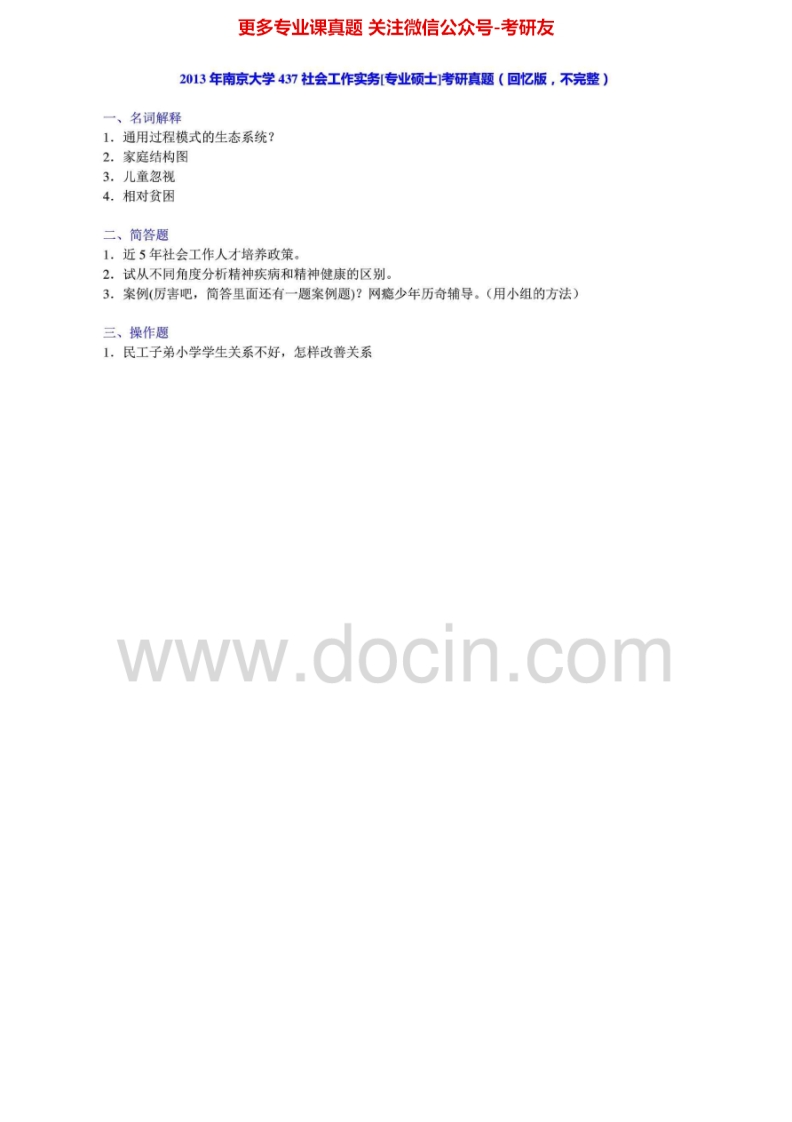 南京大学437社会工作实务[专业硕士]2010-2015年考研真题汇编.Image.Marked猴哥6个月前发布关注私信0.68MB6页04812南京大学437社会工作实务[专业硕士]2010-2015年考研真题汇编.Image.Marked此内容为免费资源,请登录后查看¥0 登录查看免费资源 第1页 / 共6页 第2页 / 共6页 第3页 / 共6页 该文档为免费文档,您可直接下载完整版进行阅读 © 版权声明文章版权归作者所有,未经允许请勿转载。THE END《南京大学》(437)社会工作实务考研资料考研专业课 喜欢就支持一下吧点赞12赞赏 分享QQ空间微博QQ好友海报分享复制链接收藏