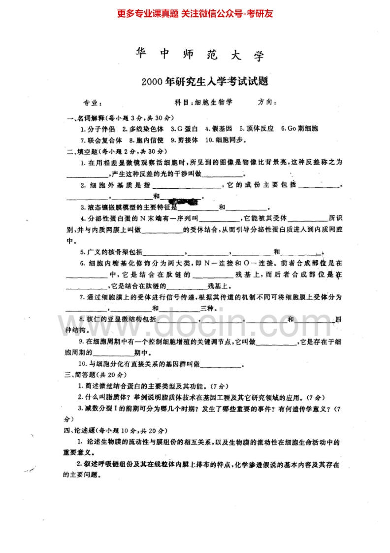华中师范大学细胞生物学1999-2002、2004-2008、回忆2011-2012考研真题汇编.Image.Marked猴哥6个月前发布关注私信4.90MB18页09140华中师范大学细胞生物学1999-2002、2004-2008、回忆2011-2012考研真题汇编.Image.Marked此内容为免费资源,请登录后查看¥0 登录查看免费资源 第1页 / 共18页 第2页 / 共18页 第3页 / 共18页 该文档为免费文档,您可直接下载完整版进行阅读 © 版权声明文章版权归作者所有,未经允许请勿转载。THE END考研专业课 喜欢就支持一下吧点赞40赞赏 分享QQ空间微博QQ好友海报分享复制链接收藏