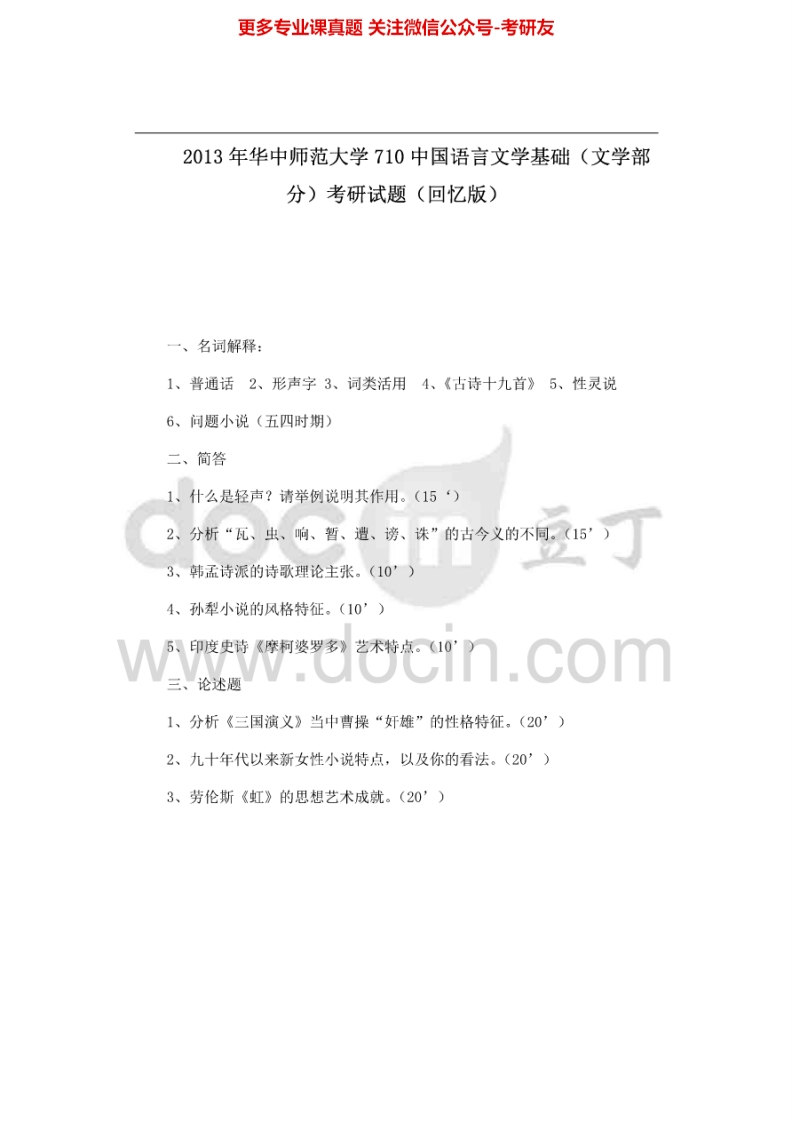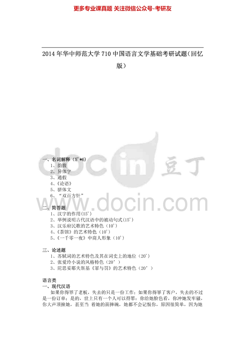 华中师范大学中国语言文学基础(回忆版)2012-2014考研真题汇编.Image.Marked猴哥6个月前发布关注私信0.23MB4页05056华中师范大学中国语言文学基础(回忆版)2012-2014考研真题汇编.Image.Marked此内容为免费资源,请登录后查看¥0 登录查看免费资源 第1页 / 共4页 第2页 / 共4页 第3页 / 共4页 该文档为免费文档,您可直接下载完整版进行阅读 © 版权声明文章版权归作者所有,未经允许请勿转载。THE END考研专业课 喜欢就支持一下吧点赞56赞赏 分享QQ空间微博QQ好友海报分享复制链接收藏