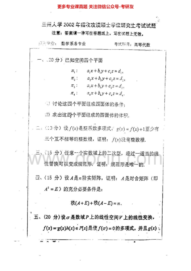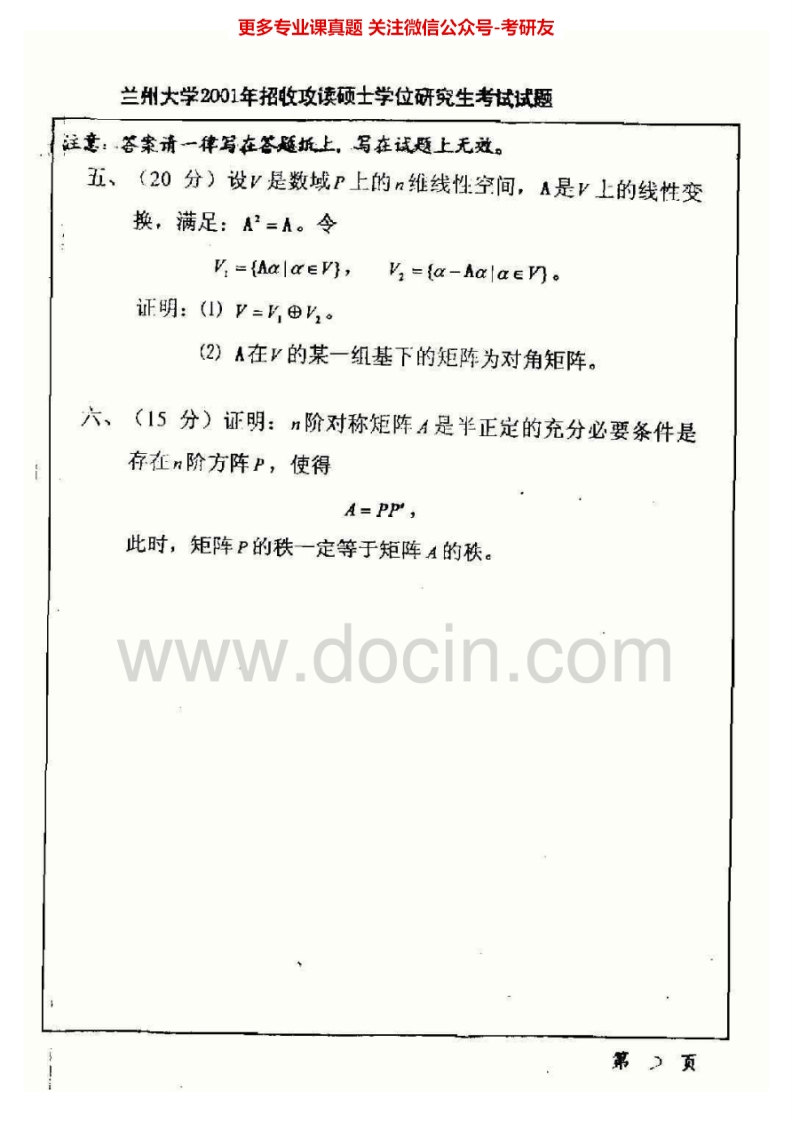 兰州大学高等代数2001-2006、2008考研真题汇编.Image.Marked猴哥6个月前发布关注私信5.57MB20页04128兰州大学高等代数2001-2006、2008考研真题汇编.Image.Marked此内容为免费资源,请登录后查看¥0 登录查看免费资源 第1页 / 共20页 第2页 / 共20页 第3页 / 共20页 该文档为免费文档,您可直接下载完整版进行阅读 © 版权声明文章版权归作者所有,未经允许请勿转载。THE END考研专业课 喜欢就支持一下吧点赞28赞赏 分享QQ空间微博QQ好友海报分享复制链接收藏