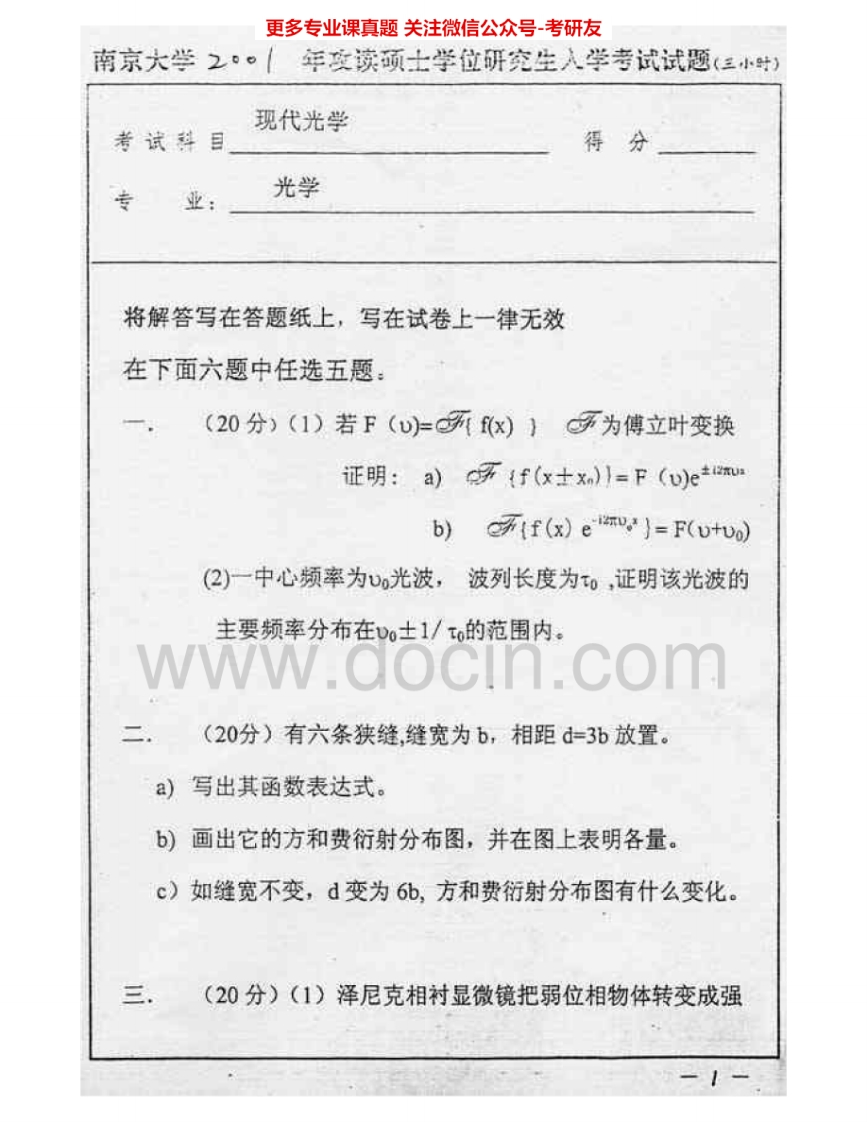 南京大学631光学2000-2008考研真题汇编.Image.Marked猴哥6个月前发布关注私信8.88MB19页05155南京大学631光学2000-2008考研真题汇编.Image.Marked此内容为免费资源,请登录后查看¥0 登录查看免费资源 第1页 / 共19页 第2页 / 共19页 第3页 / 共19页 该文档为免费文档,您可直接下载完整版进行阅读 © 版权声明文章版权归作者所有,未经允许请勿转载。THE END考研专业课 喜欢就支持一下吧点赞55赞赏 分享QQ空间微博QQ好友海报分享复制链接收藏