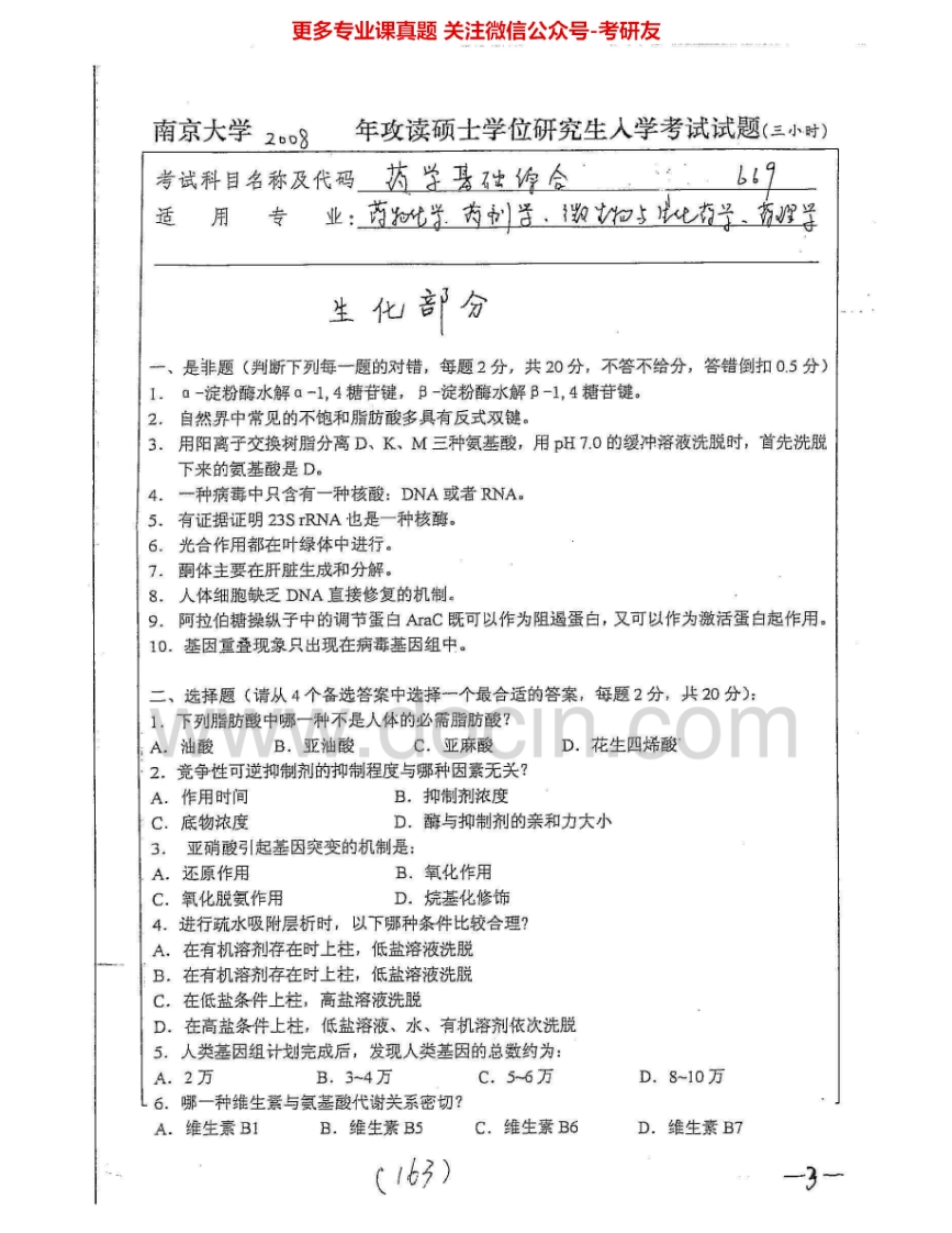 南京大学669药学基础综合2008-2009考研真题汇编.Image.Marked猴哥6个月前发布关注私信3.24MB12页04246南京大学669药学基础综合2008-2009考研真题汇编.Image.Marked此内容为免费资源,请登录后查看¥0 登录查看免费资源 第1页 / 共12页 第2页 / 共12页 第3页 / 共12页 该文档为免费文档,您可直接下载完整版进行阅读 © 版权声明文章版权归作者所有,未经允许请勿转载。THE END《南京大学》(669)药学基础综合考研资料考研专业课 喜欢就支持一下吧点赞46赞赏 分享QQ空间微博QQ好友海报分享复制链接收藏