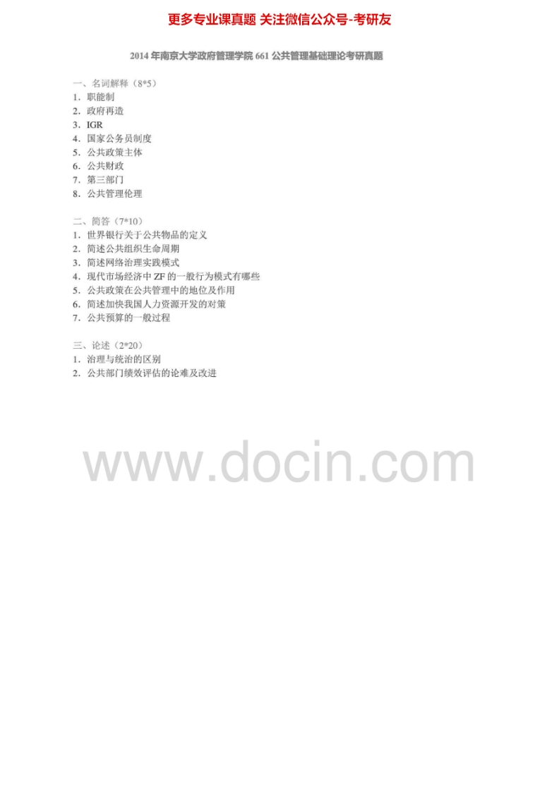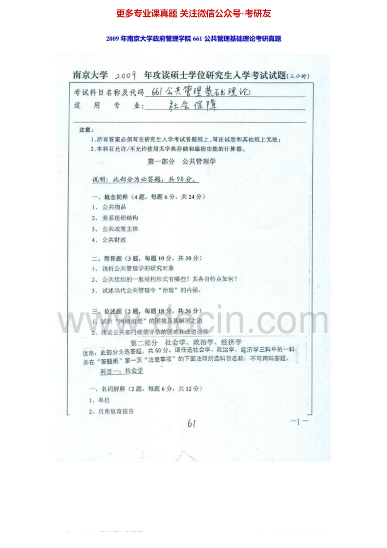 南京大学661公共管理基础理论2007-2009、2014真题其中2007-2008有答案考研真题汇编.Image.Marked-学习资源网 - 分享优质学习资料