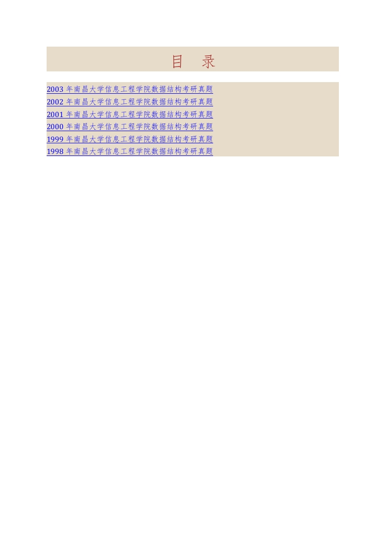 南昌大学信息工程学院882数据结构历年考研真题汇编猴哥6个月前发布关注私信1.79MB32页03057南昌大学信息工程学院882数据结构历年考研真题汇编此内容为免费资源,请登录后查看¥0 登录查看免费资源 第1页 / 共32页 第2页 / 共32页 第3页 / 共32页 该文档为免费文档,您可直接下载完整版进行阅读 © 版权声明文章版权归作者所有,未经允许请勿转载。THE END考研专业课 喜欢就支持一下吧点赞57赞赏 分享QQ空间微博QQ好友海报分享复制链接收藏
