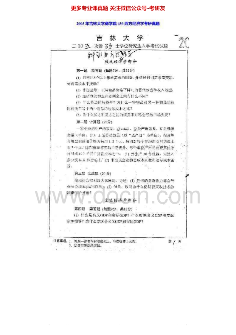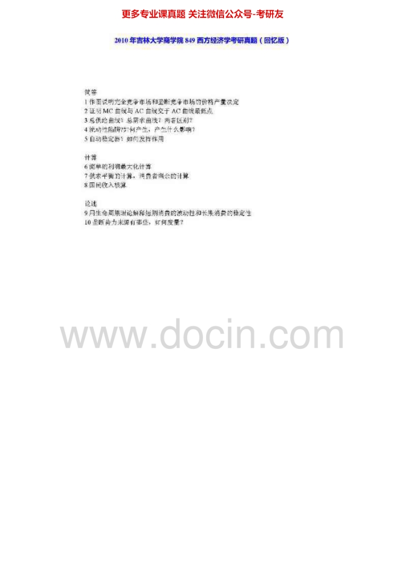 吉林大学843西方经济学2000-2001、2004-2005、2010、2012考研真题汇编-学习资源网 - 分享优质学习资料