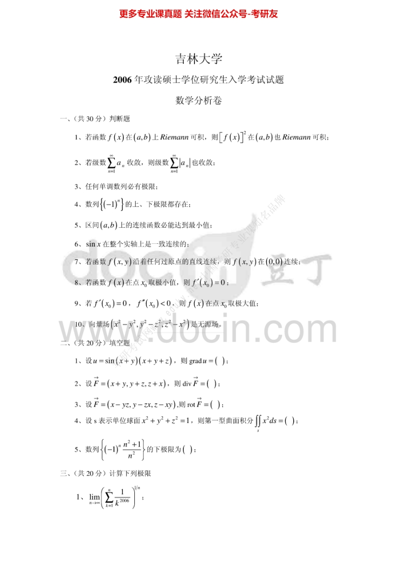 吉林大学数学分析2000-2002、2010考研真题汇编猴哥6个月前发布关注私信1.05MB14页06014吉林大学数学分析2000-2002、2010考研真题汇编此内容为免费资源,请登录后查看¥0 登录查看免费资源 第1页 / 共14页 第2页 / 共14页 第3页 / 共14页 该文档为免费文档,您可直接下载完整版进行阅读 © 版权声明文章版权归作者所有,未经允许请勿转载。THE END考研专业课 喜欢就支持一下吧点赞14赞赏 分享QQ空间微博QQ好友海报分享复制链接收藏