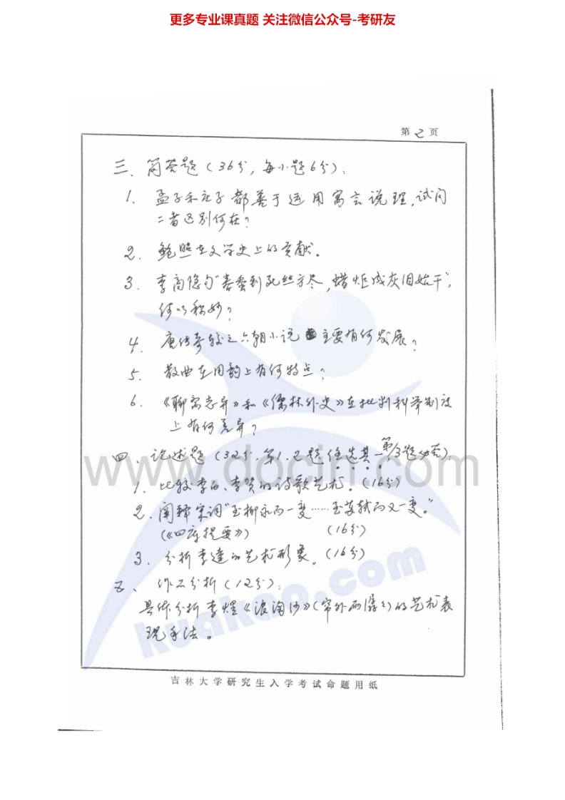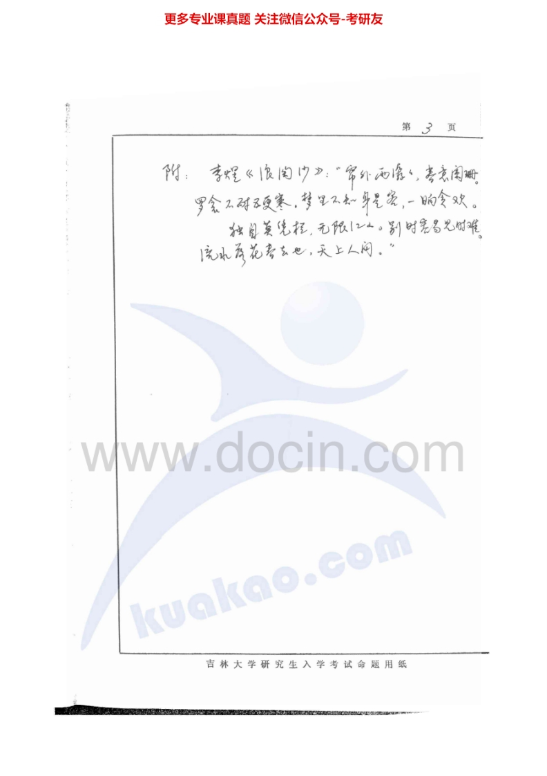 吉林大学文学综合现当代文学99-02、12中国古代文学史01-02考研真题汇编猴哥6个月前发布关注私信2.11MB15页06449吉林大学文学综合现当代文学99-02、12中国古代文学史01-02考研真题汇编此内容为免费资源,请登录后查看¥0 登录查看免费资源 第1页 / 共15页 第2页 / 共15页 第3页 / 共15页 该文档为免费文档,您可直接下载完整版进行阅读 © 版权声明文章版权归作者所有,未经允许请勿转载。THE END考研专业课 喜欢就支持一下吧点赞49赞赏 分享QQ空间微博QQ好友海报分享复制链接收藏
