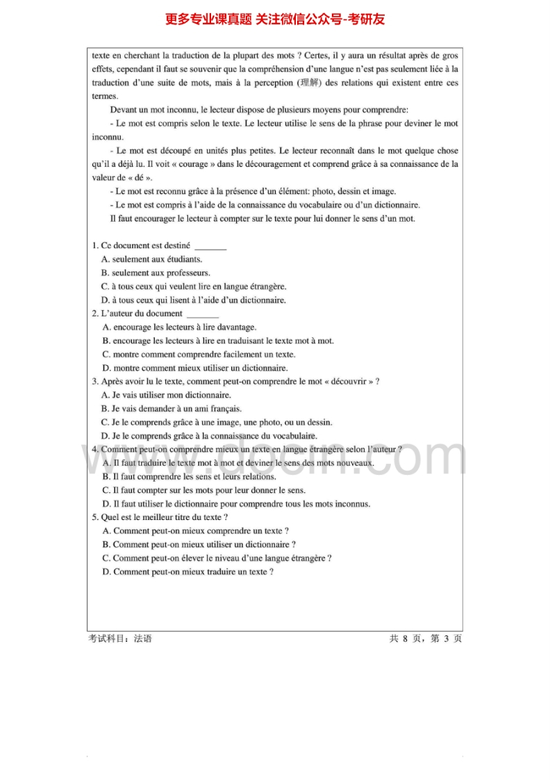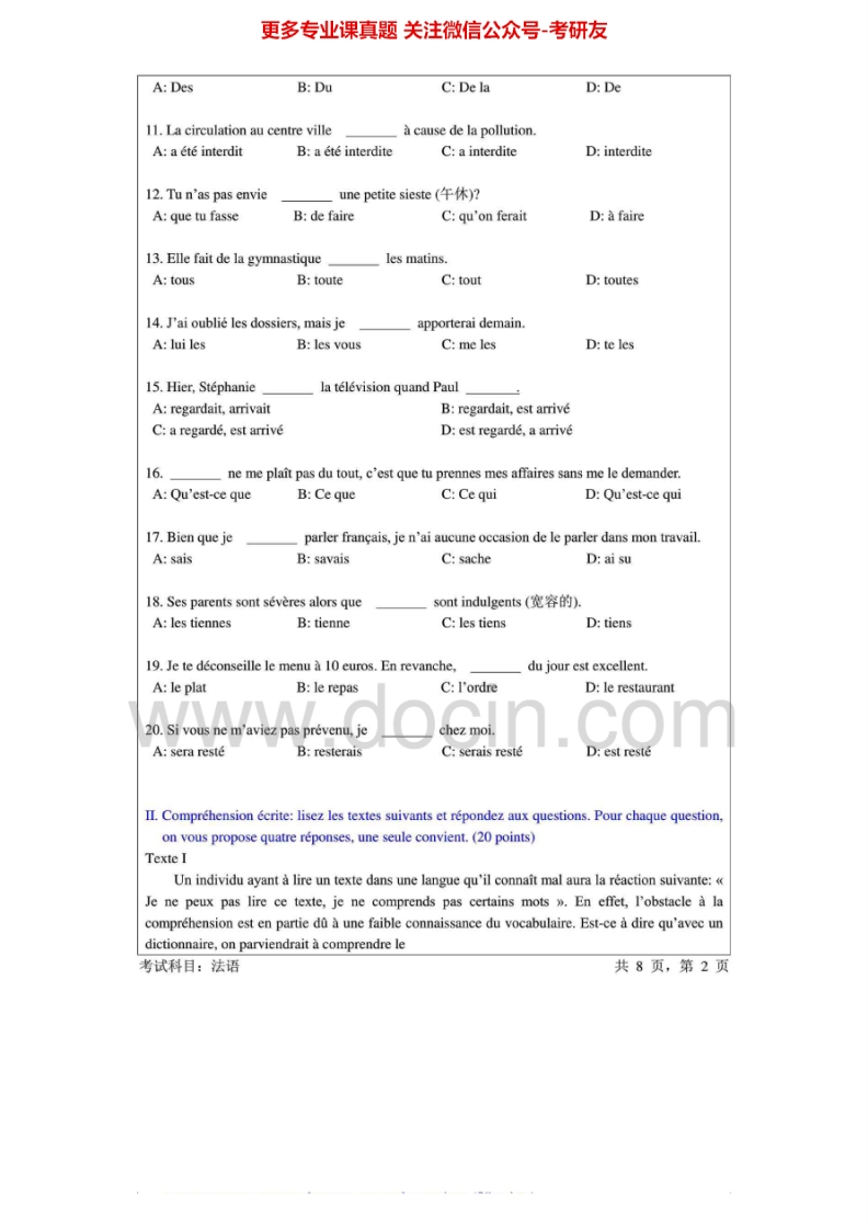 暨南大学280法语2010-2013考研真题汇编.Image.Marked猴哥6个月前发布关注私信6.40MB31页03364暨南大学280法语2010-2013考研真题汇编.Image.Marked此内容为免费资源,请登录后查看¥0 登录查看免费资源 第1页 / 共31页 第2页 / 共31页 第3页 / 共31页 该文档为免费文档,您可直接下载完整版进行阅读 © 版权声明文章版权归作者所有,未经允许请勿转载。THE END考研专业课 喜欢就支持一下吧点赞64赞赏 分享QQ空间微博QQ好友海报分享复制链接收藏