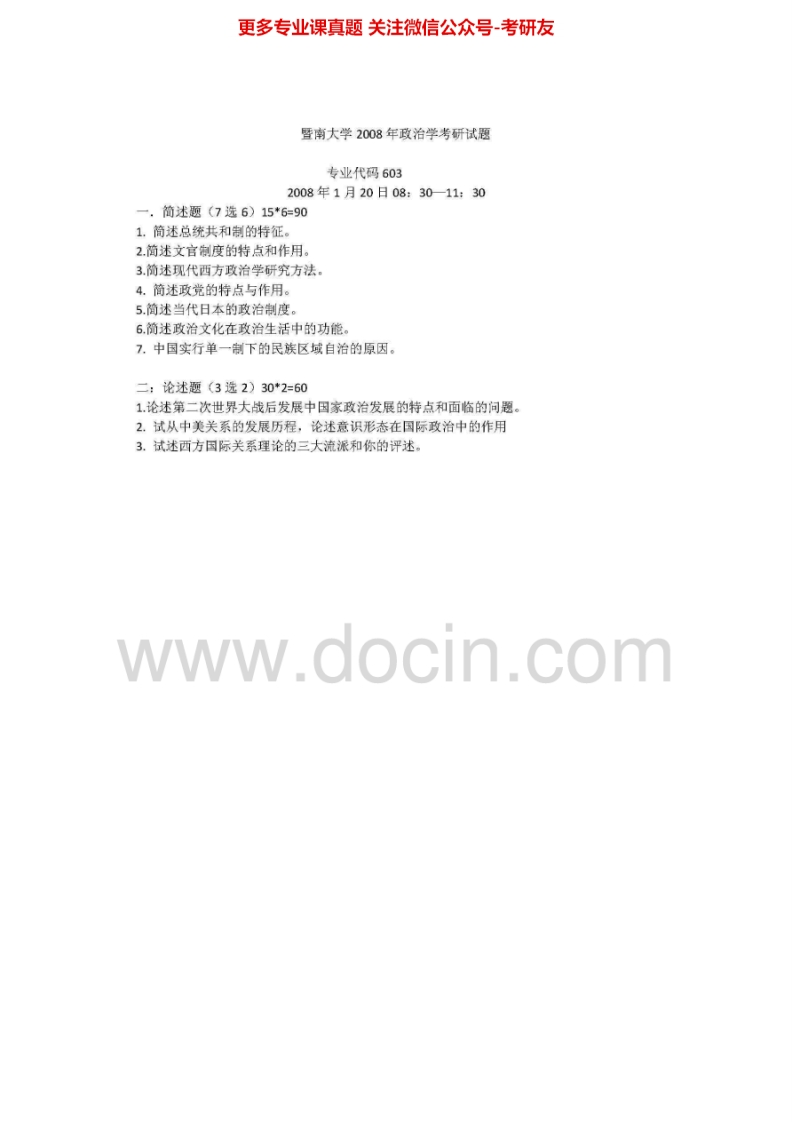 暨南大学703政治学2007-2015考研真题汇编.Image.Marked猴哥6个月前发布关注私信0.82MB9页04443暨南大学703政治学2007-2015考研真题汇编.Image.Marked此内容为免费资源,请登录后查看¥0 登录查看免费资源 第1页 / 共9页 第2页 / 共9页 第3页 / 共9页 该文档为免费文档,您可直接下载完整版进行阅读 © 版权声明文章版权归作者所有,未经允许请勿转载。THE END《暨南大学》(703)政治学考研资料考研专业课 喜欢就支持一下吧点赞43赞赏 分享QQ空间微博QQ好友海报分享复制链接收藏