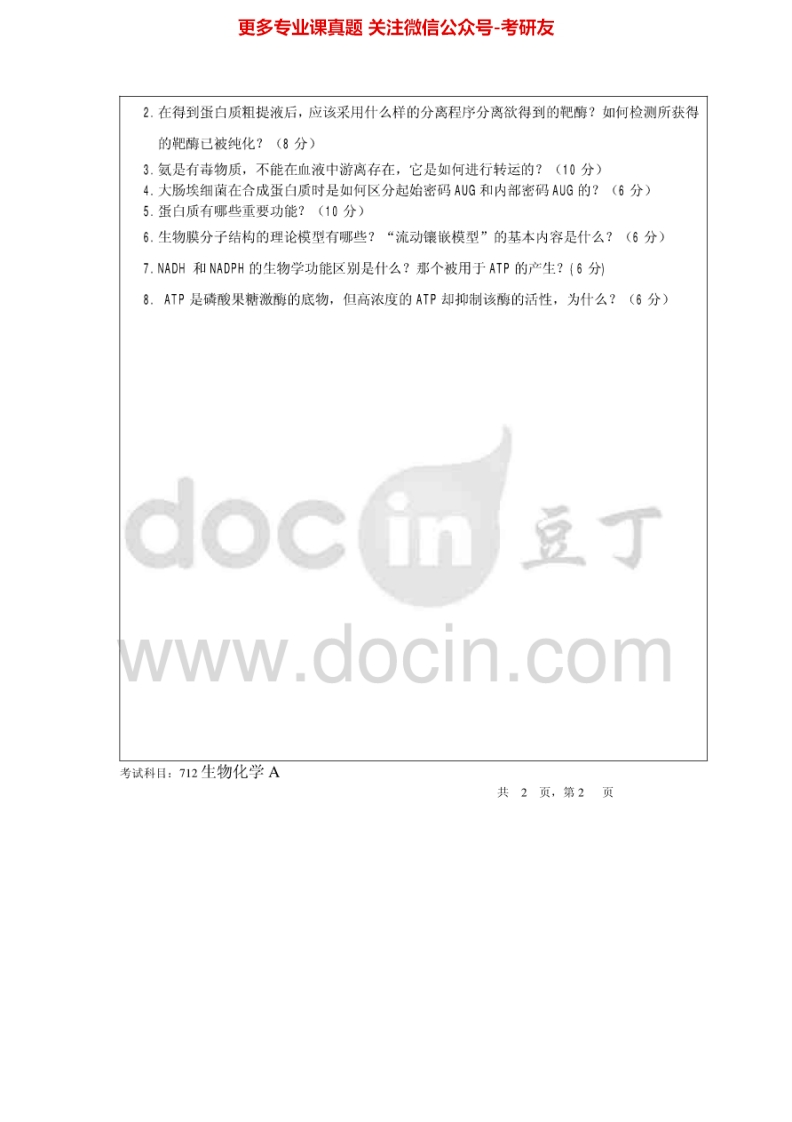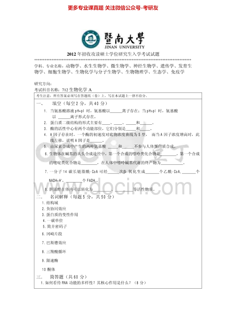 暨南大学712生物化学A2011-2015考研真题汇编.Image.Marked猴哥6个月前发布关注私信0.84MB8页06116暨南大学712生物化学A2011-2015考研真题汇编.Image.Marked此内容为免费资源,请登录后查看¥0 登录查看免费资源 第1页 / 共8页 第2页 / 共8页 第3页 / 共8页 该文档为免费文档,您可直接下载完整版进行阅读 © 版权声明文章版权归作者所有,未经允许请勿转载。THE END《暨南大学》(712)生物化学A考研资料考研专业课 喜欢就支持一下吧点赞16赞赏 分享QQ空间微博QQ好友海报分享复制链接收藏