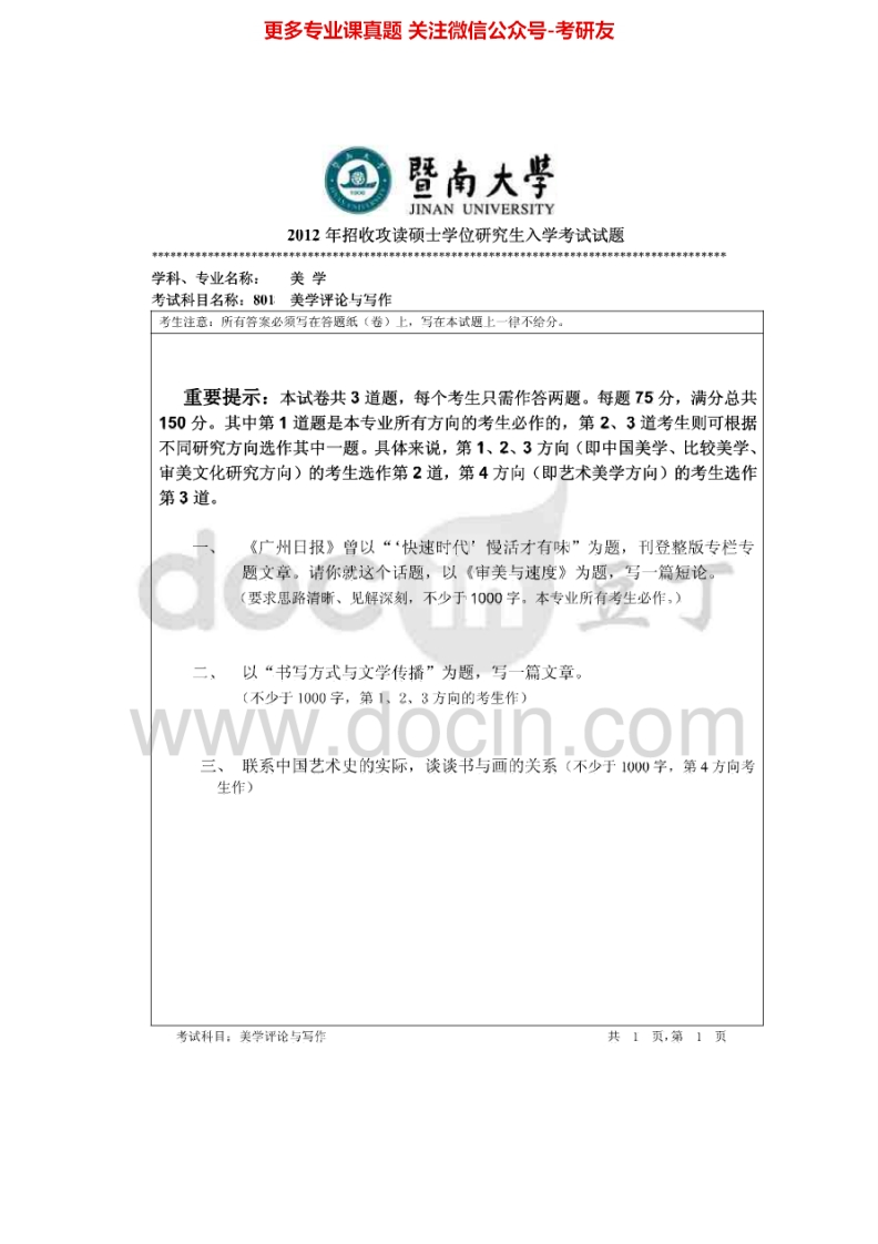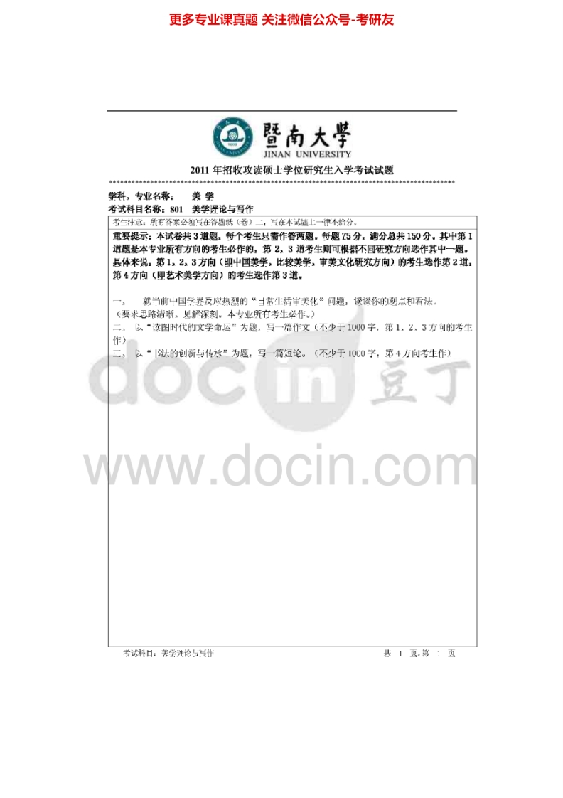 暨南大学801美学评论与写作2010-2015考研真题汇编.Image.Marked猴哥6个月前发布关注私信0.74MB6页06931暨南大学801美学评论与写作2010-2015考研真题汇编.Image.Marked此内容为免费资源,请登录后查看¥0 登录查看免费资源 第1页 / 共6页 第2页 / 共6页 第3页 / 共6页 该文档为免费文档,您可直接下载完整版进行阅读 © 版权声明文章版权归作者所有,未经允许请勿转载。THE END考研专业课 喜欢就支持一下吧点赞31赞赏 分享QQ空间微博QQ好友海报分享复制链接收藏