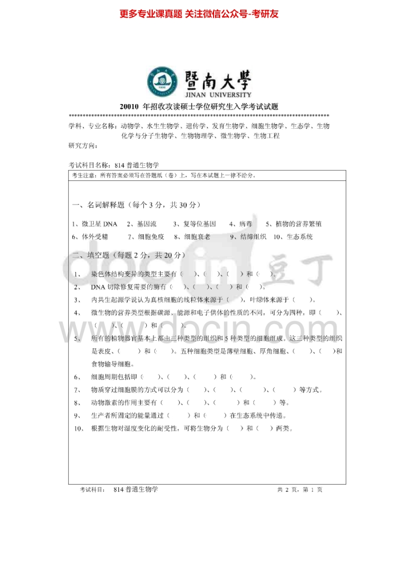 暨南大学814普通生物学2009-2015考研真题汇编.Image.Marked猴哥6个月前发布关注私信1.37MB12页09243暨南大学814普通生物学2009-2015考研真题汇编.Image.Marked此内容为免费资源,请登录后查看¥0 登录查看免费资源 第1页 / 共12页 第2页 / 共12页 第3页 / 共12页 该文档为免费文档,您可直接下载完整版进行阅读 © 版权声明文章版权归作者所有,未经允许请勿转载。THE END《暨南大学》(814)普通生物学考研资料考研专业课 喜欢就支持一下吧点赞43赞赏 分享QQ空间微博QQ好友海报分享复制链接收藏