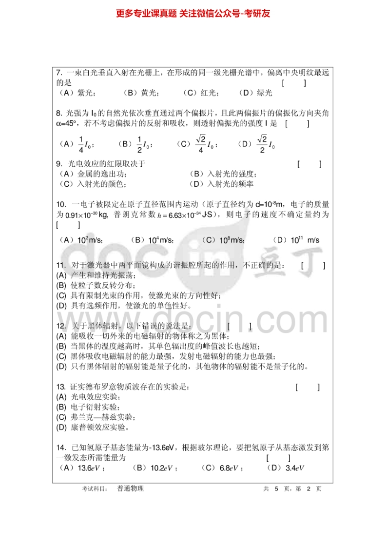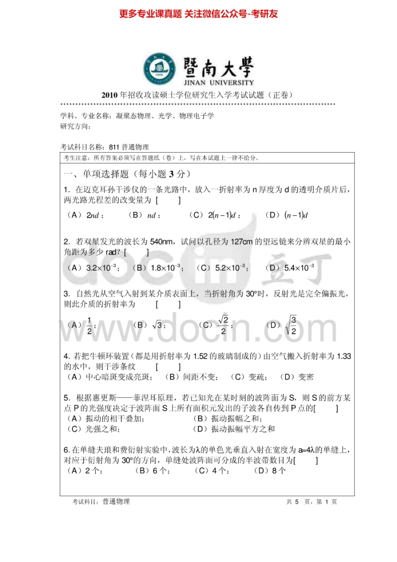 暨南大学811普通物理2010-2014考研真题汇编.Image.Marked-学习资源网 - 分享优质学习资料