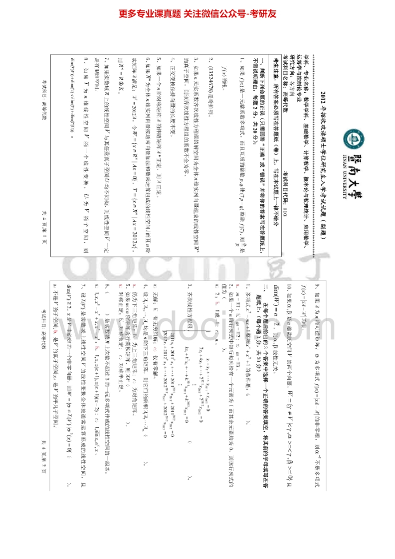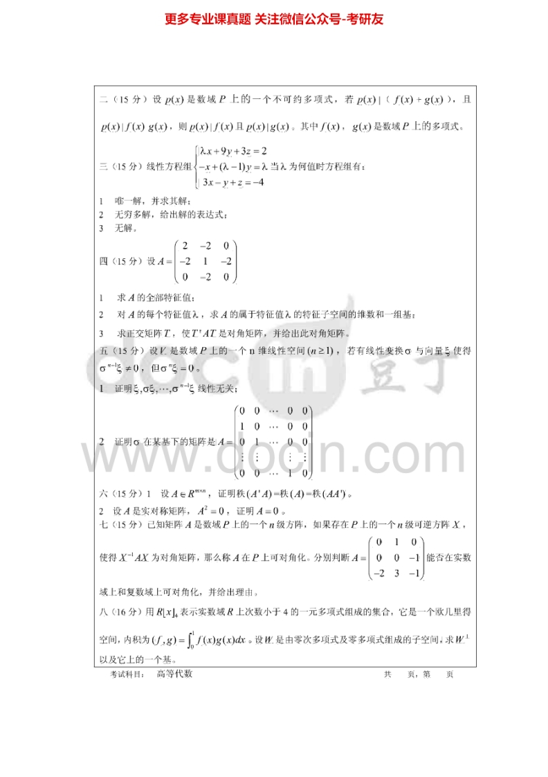 暨南大学810高等代数2010、2012-2015考研真题汇编.Image.Marked猴哥6个月前发布关注私信0.99MB10页03665暨南大学810高等代数2010、2012-2015考研真题汇编.Image.Marked此内容为免费资源,请登录后查看¥0 登录查看免费资源 第1页 / 共10页 第2页 / 共10页 第3页 / 共10页 该文档为免费文档,您可直接下载完整版进行阅读 © 版权声明文章版权归作者所有,未经允许请勿转载。THE END《暨南大学》(810)高等代数考研资料考研专业课 喜欢就支持一下吧点赞65赞赏 分享QQ空间微博QQ好友海报分享复制链接收藏
