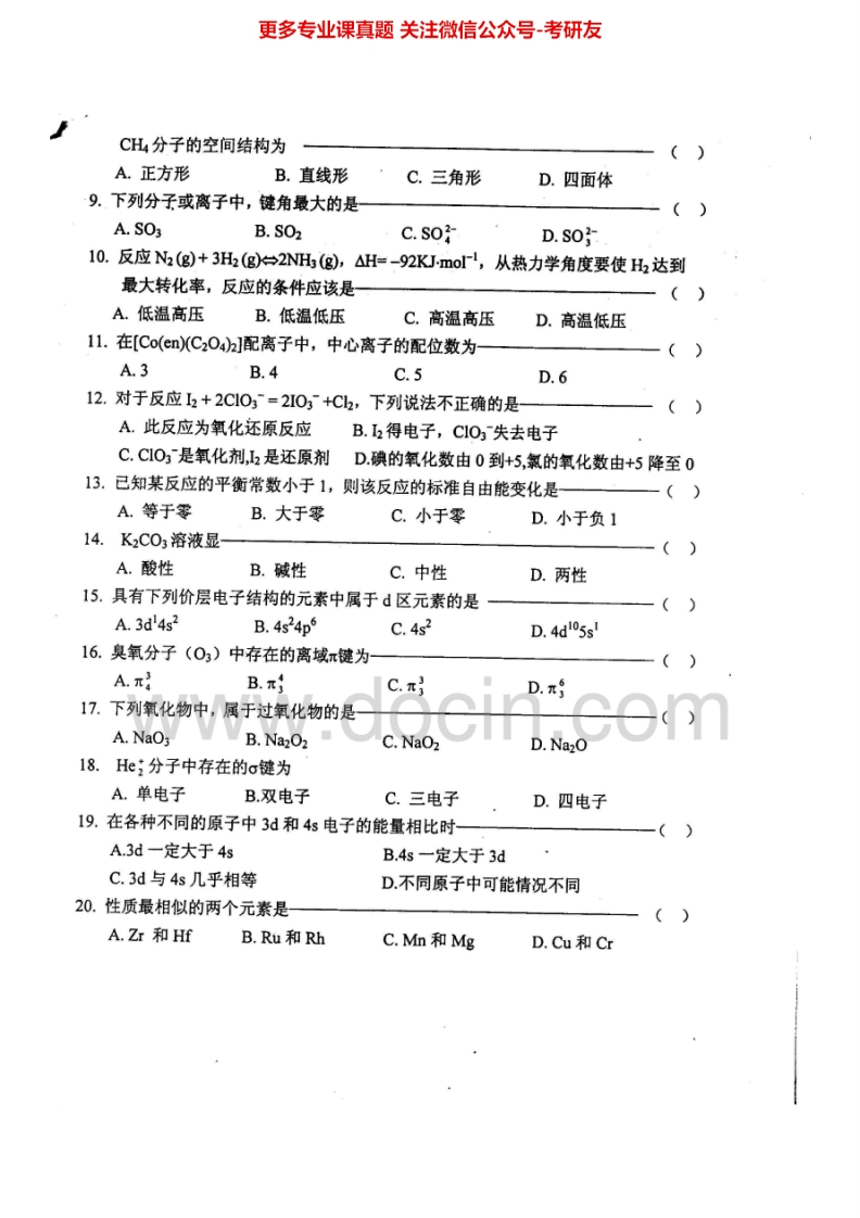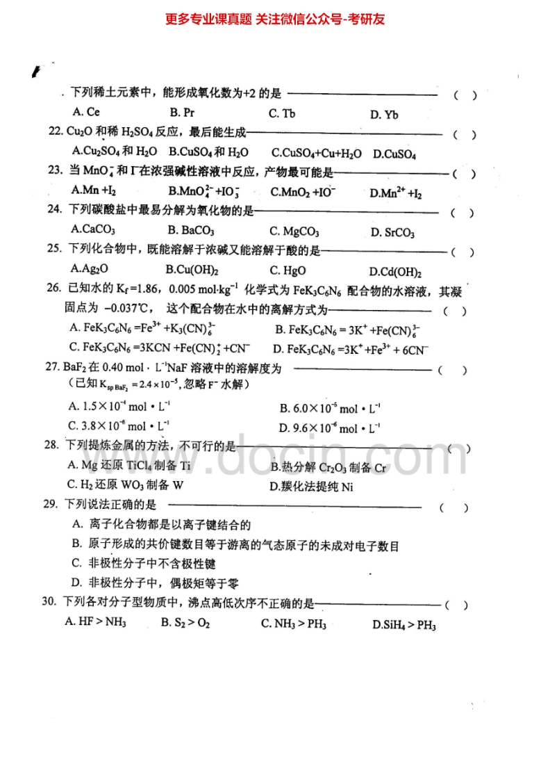 暨南大学710无机化学2000-2002、2010-2012、2014-2015考研真题汇编.Image.Marked猴哥6个月前发布关注私信6.16MB35页05363暨南大学710无机化学2000-2002、2010-2012、2014-2015考研真题汇编.Image.Marked此内容为免费资源,请登录后查看¥0 登录查看免费资源 第1页 / 共35页 第2页 / 共35页 第3页 / 共35页 该文档为免费文档,您可直接下载完整版进行阅读 © 版权声明文章版权归作者所有,未经允许请勿转载。THE END《暨南大学》(710)无机化学考研资料考研专业课 喜欢就支持一下吧点赞63赞赏 分享QQ空间微博QQ好友海报分享复制链接收藏