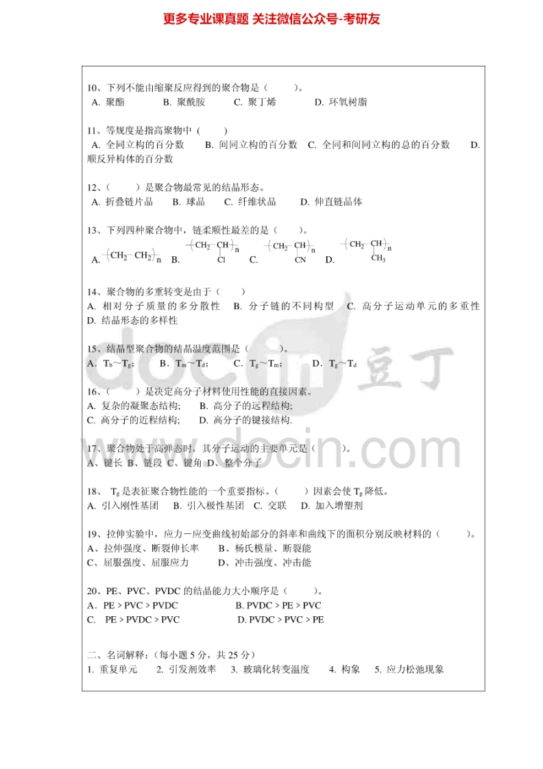 暨南大学816高分子化学与物理2014-2015考研真题汇编.Image.Marked猴哥6个月前发布关注私信0.58MB7页05018暨南大学816高分子化学与物理2014-2015考研真题汇编.Image.Marked此内容为免费资源,请登录后查看¥0 登录查看免费资源 第1页 / 共7页 第2页 / 共7页 第3页 / 共7页 该文档为免费文档,您可直接下载完整版进行阅读 © 版权声明文章版权归作者所有,未经允许请勿转载。THE END《暨南大学》(816)高分子化学与物理考研资料考研专业课 喜欢就支持一下吧点赞18赞赏 分享QQ空间微博QQ好友海报分享复制链接收藏